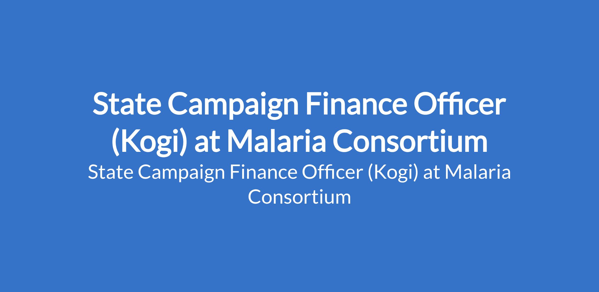 Malaria Consortium is recruiting to fill the position of: State Campaign Finance Officer. The position is located in Kogi State. Interested candidates should possess an HND / Bachelor's Degree in Accounting with at least one year in a Finance / Accounts Officer position.