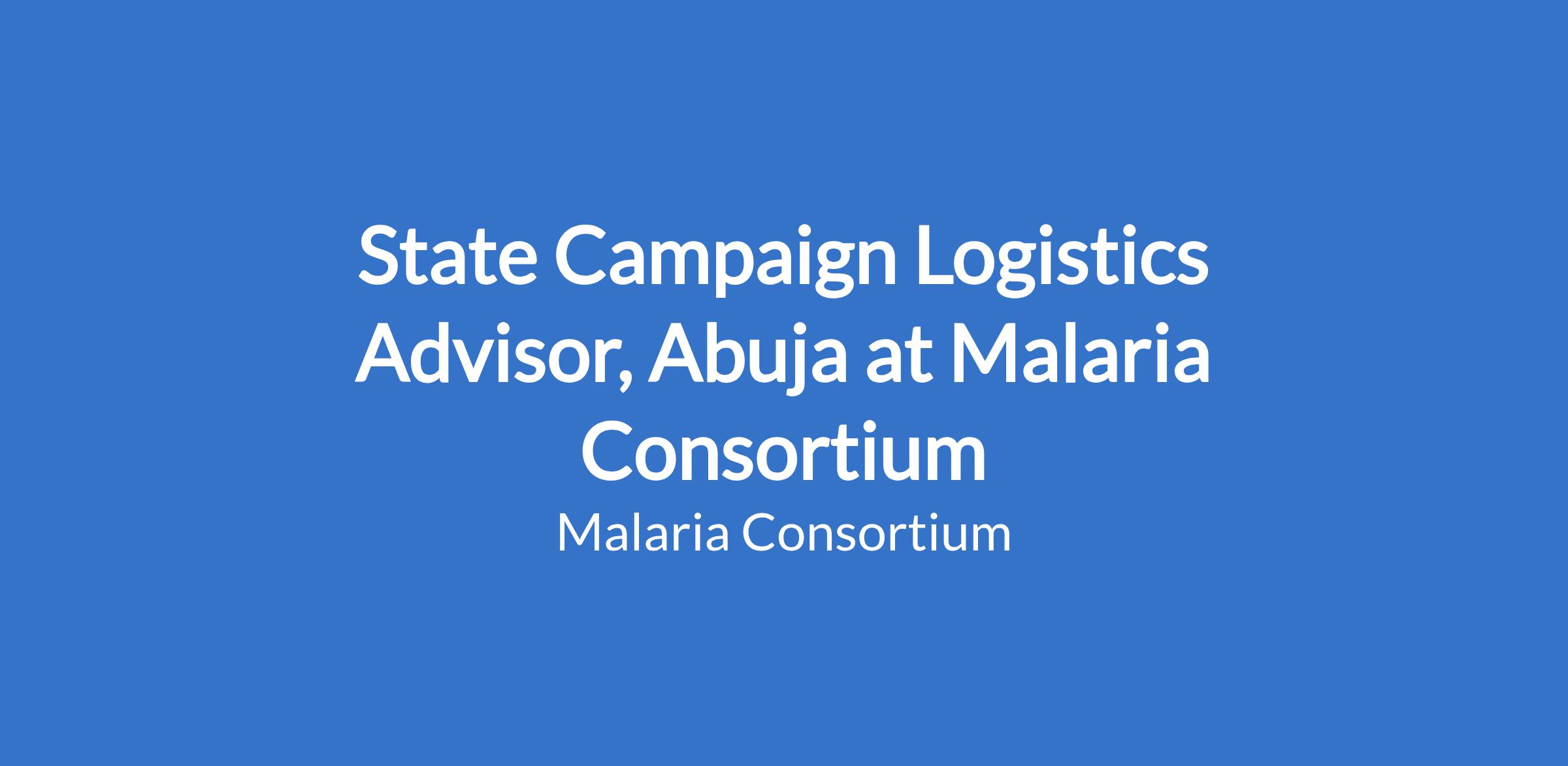 State Campaign Logistics Advisor, Abuja at Malaria Consortium