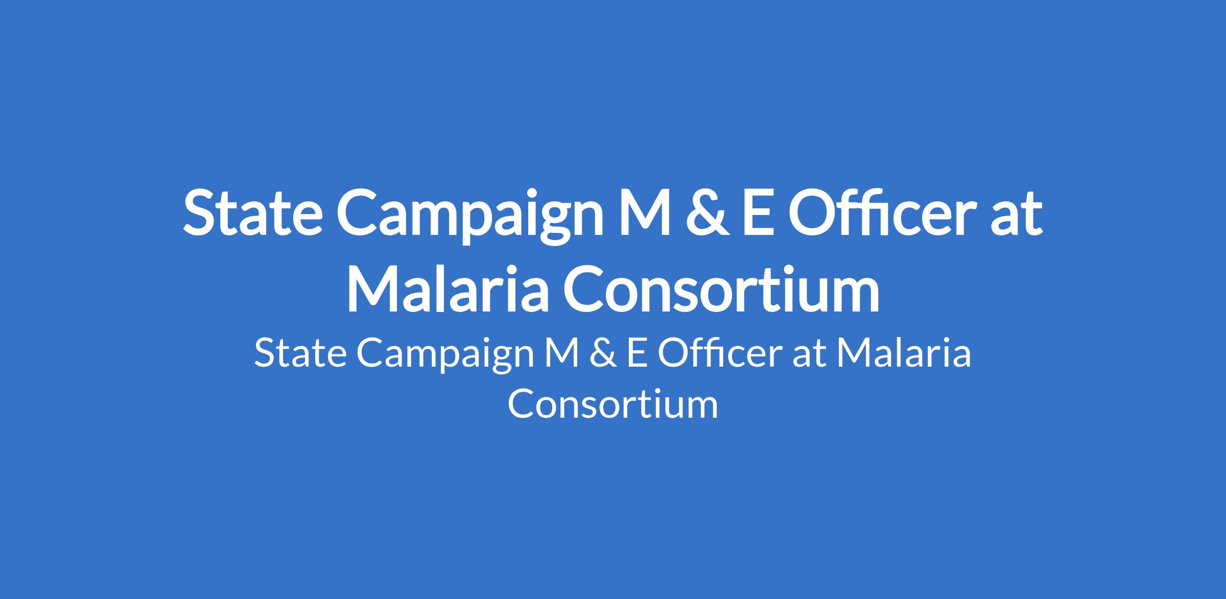 Malaria Consortium is recruiting to fill the position of: State Campaign M & E Officer. The position is located in Borno State. Interested candidates should possess a Degree in Statistics, Demography, Mathematics or any other relevant quantitative relevant discipline with a minimum of 5 years experience.