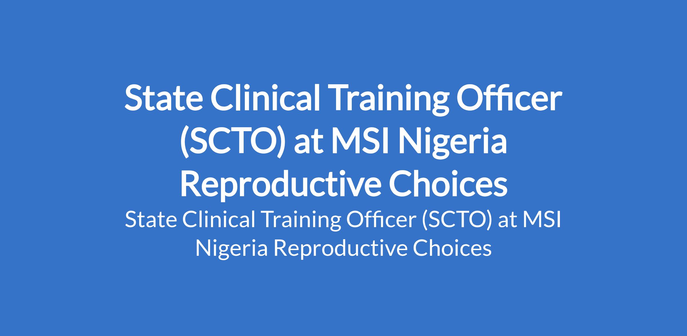 MSI Nigeria Reproductive Choices is recruiting to fill the position of: State Clinical Training Officer (SCTO). The position is located in Benue State. Interested candidates should be a Medical Doctor, Registered Nurse, Midwife or other related areas in Medical Sciences with significant experience providing competency-based training and certification for providers (Nurses/Midwives and Doctors) in modern methods of family planning.