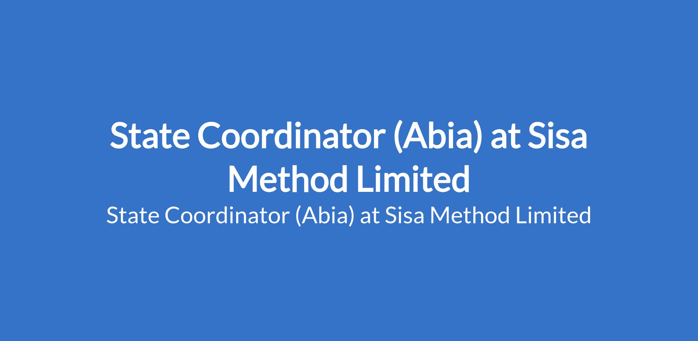 Sisa Method Limited is recruiting to fill the position of: State Coordinator. The position is located in Abia State. Interested candidates should possess a Bachelors Degree in a relevant field with 36 years of relevant experience in programme coordination, project management, or development programmes.