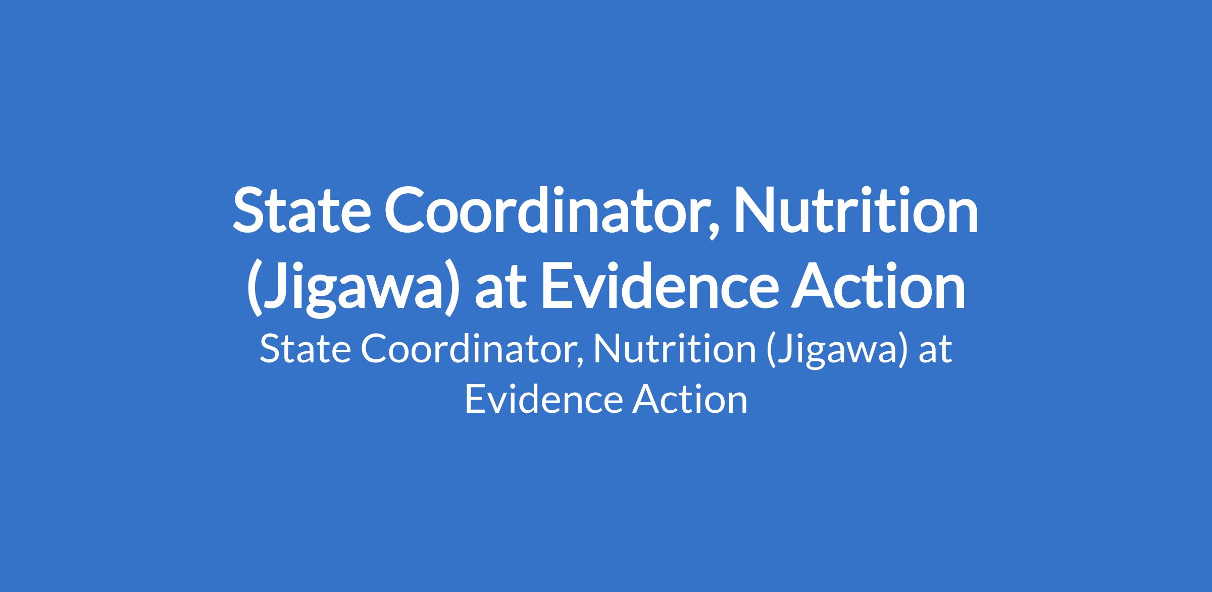 Evidence Action is recruiting to fill the position of: State Coordinator, Nutrition. The position is located in Jigawa State. Interested candidates should possess a Bachelor's Degree in Public Health, Nutrition, Medicine, Nursing, Pharmacy, Health Sciences, Social Sciences, Development Studies, or a related field; Masters degree in Public Health, Nutrition, Health Systems, Development Studies, or a related discipline with 5years of experience in nutrition, public health, or child health programming, preferably with government or NGOs in Nigeria.