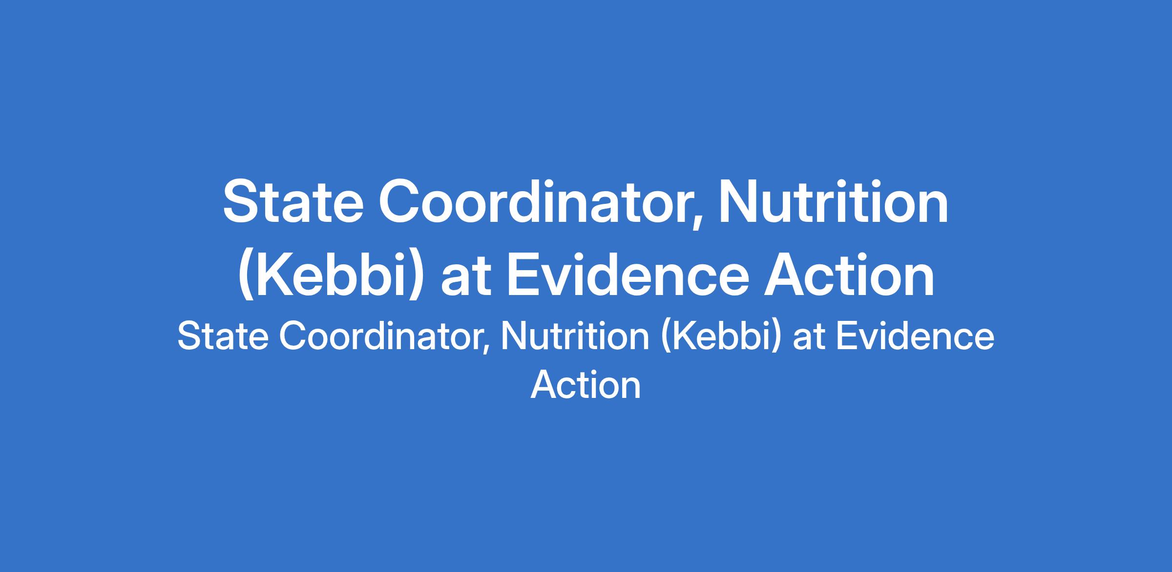 Evidence Action is recruiting to fill the position of: State Coordinator, Nutrition. The position is located in Kebbi State. Interested candidates should possess a Bachelor's Degree in Public Health, Nutrition, Medicine, Nursing, Pharmacy, Health Sciences, Social Sciences, Development Studies, or a related field; Masters degree in Public Health, Nutrition, Health Systems, Development Studies, or a related discipline with 5years of experience in nutrition, public health, or child health programming, preferably with government or NGOs in Nigeria.
