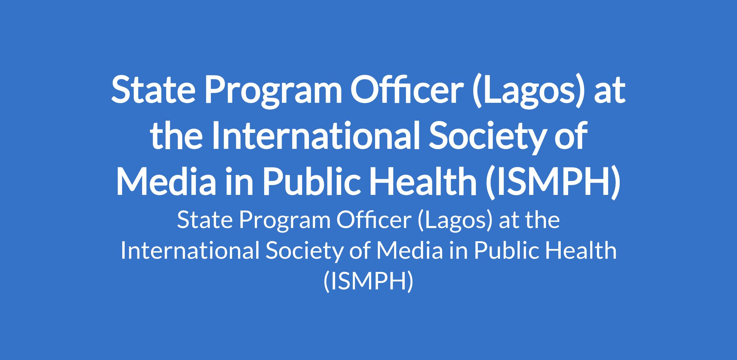 The International Society of Media in Public Health (ISMPH) is recruiting to fill the position of: State Program Officer. The position is located in Lagos State. Interested candidates should possess a Degree in Public Health, Development Studies, Journalism, Mass Communication, Business Administration or a related field with a minimum of 5 years of experience in public health programming, Media advocacy and stakeholder engagement.