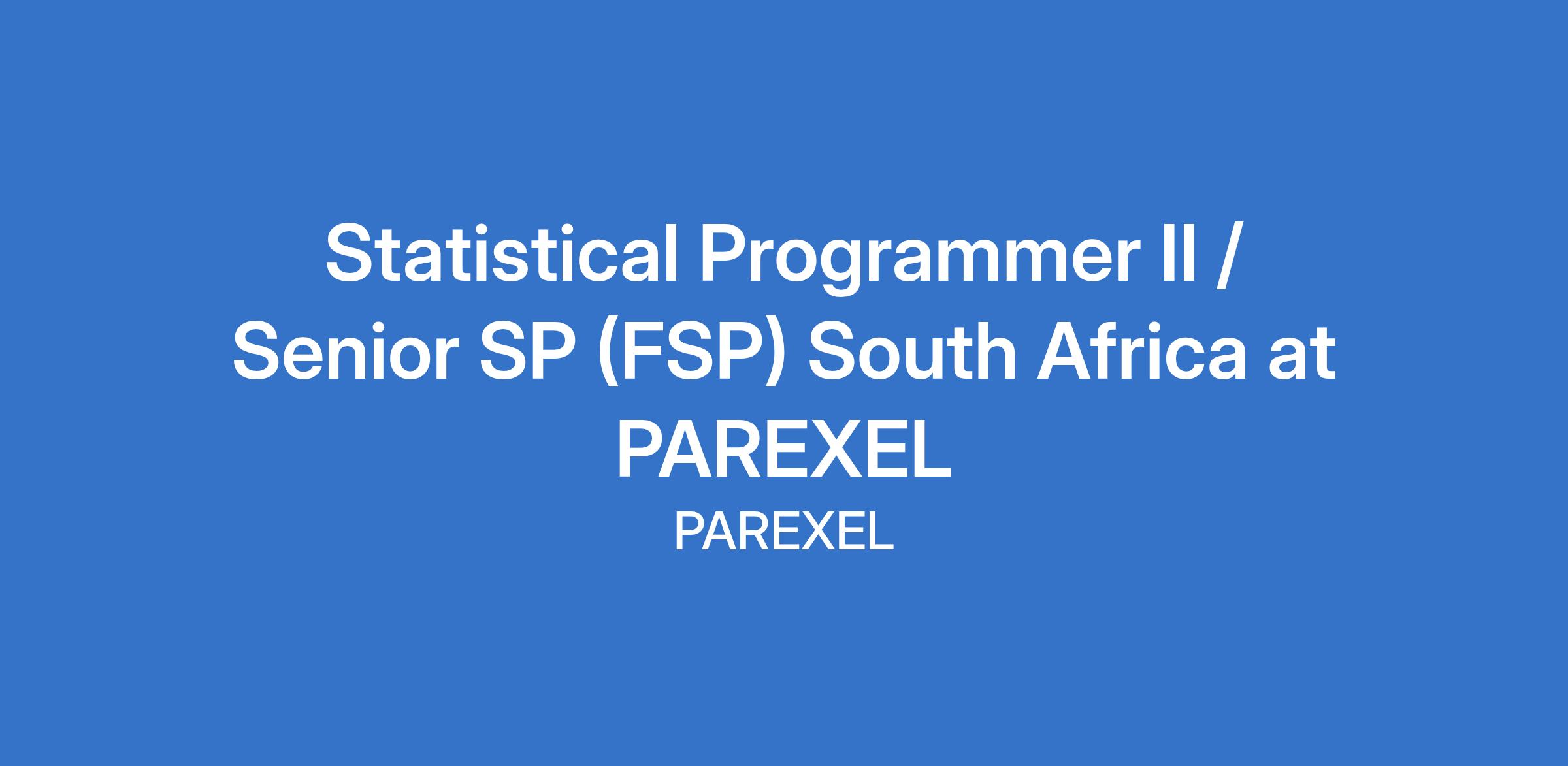 Statistical Programmer II / Senior SP (FSP) South Africa at PAREXEL