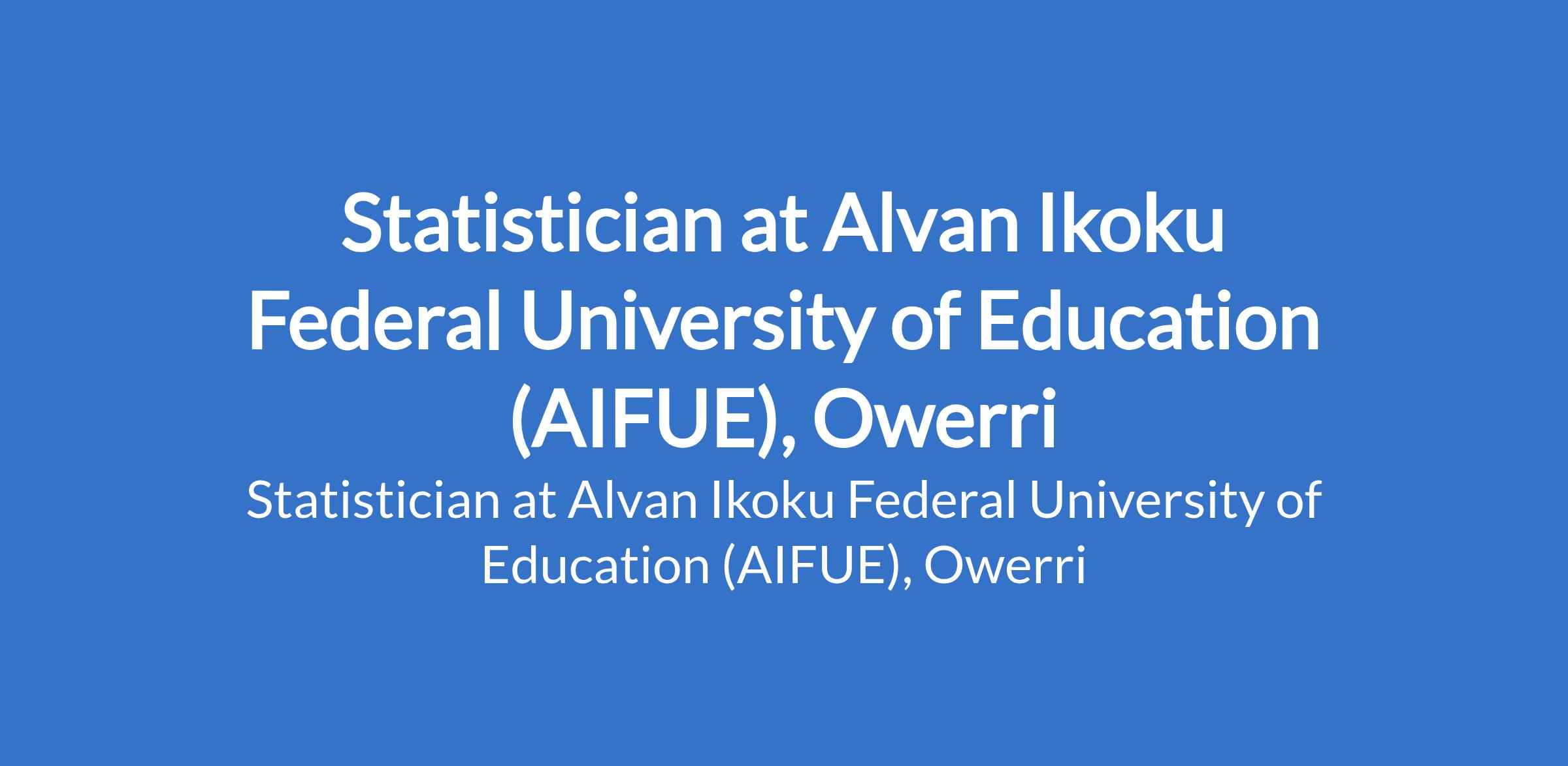 Alvan Ikoku Federal University of Education (AIFUE), Owerri invites applications from suitably qualified candidates for the position of: Statistician. The position is located in Imo State. Interested candidates should possess a B.Sc. Degree in Statistics or Mathematics.