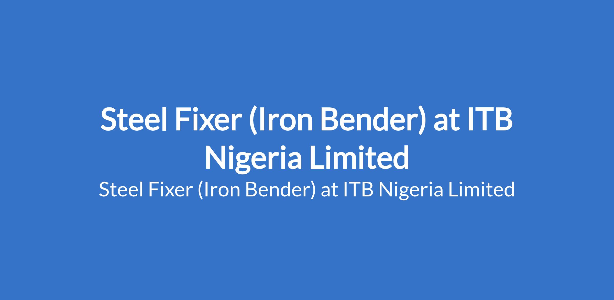 ITB Nigeria Limited is recruiting to fill the position of: Steel Fixer (Iron Bender). Interested candidates should possess a valid means of identification (NIN Slip) and any other Government recognized ID and evidence of previous employment or site experience (eg, reference from supervisor, site ID card, or employment letter) with proven experience in construction site work.