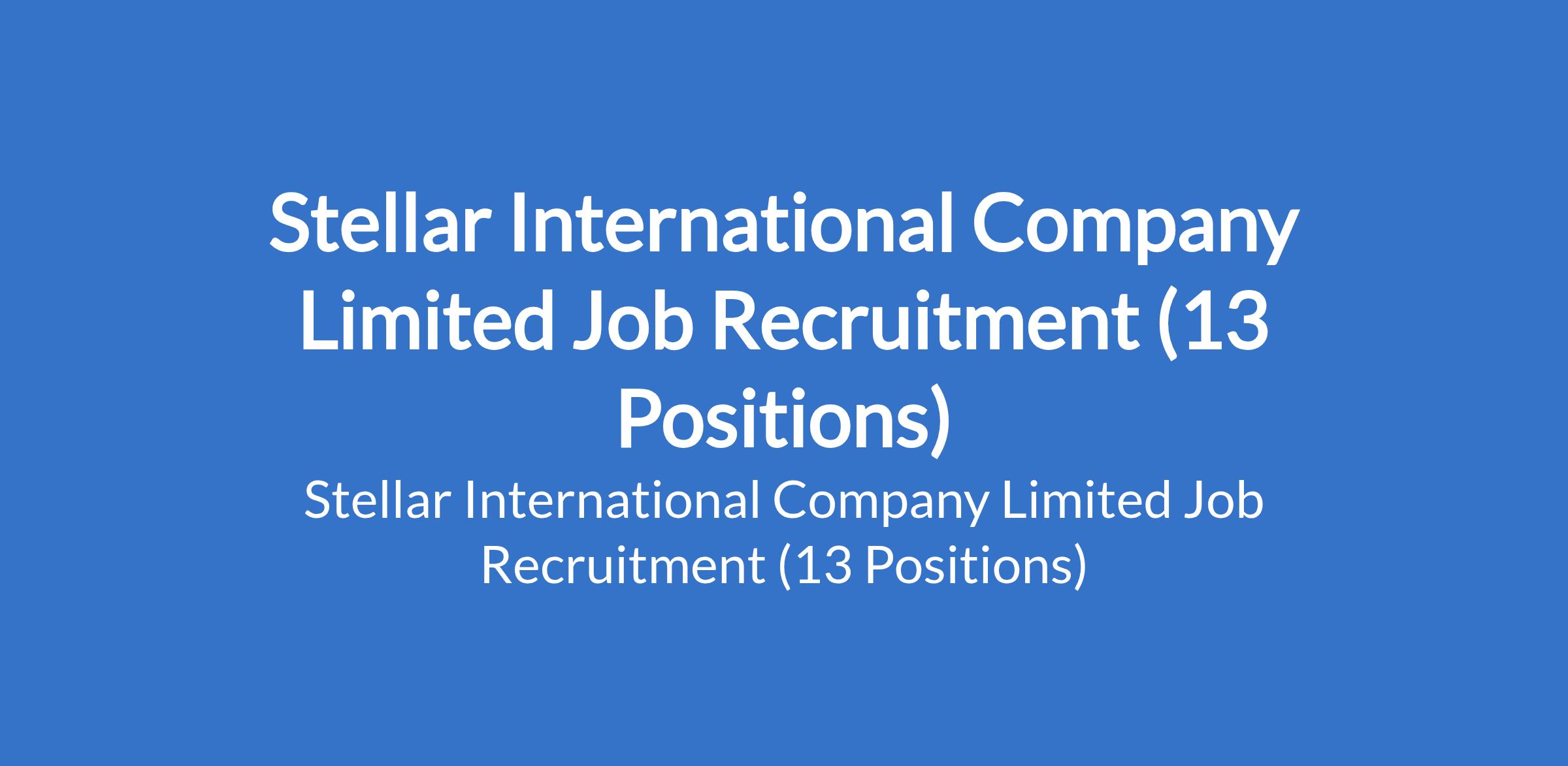 Stellar International Company Limited is recruiting suitable candidates to fill the following positions in Abuja, Anambra, Kano, Abia, Lagos, Bauchi, Rivers, and Ogun States: Weighbridge Officer, Logistics Supervisor, Sales Represenatative (Steel and Electronics), Human Resource Supervisor / Manager, Sales Representative, Chinese Translator, Sales Manager, Business Development Officer, and Prefabricated House Supervisor.