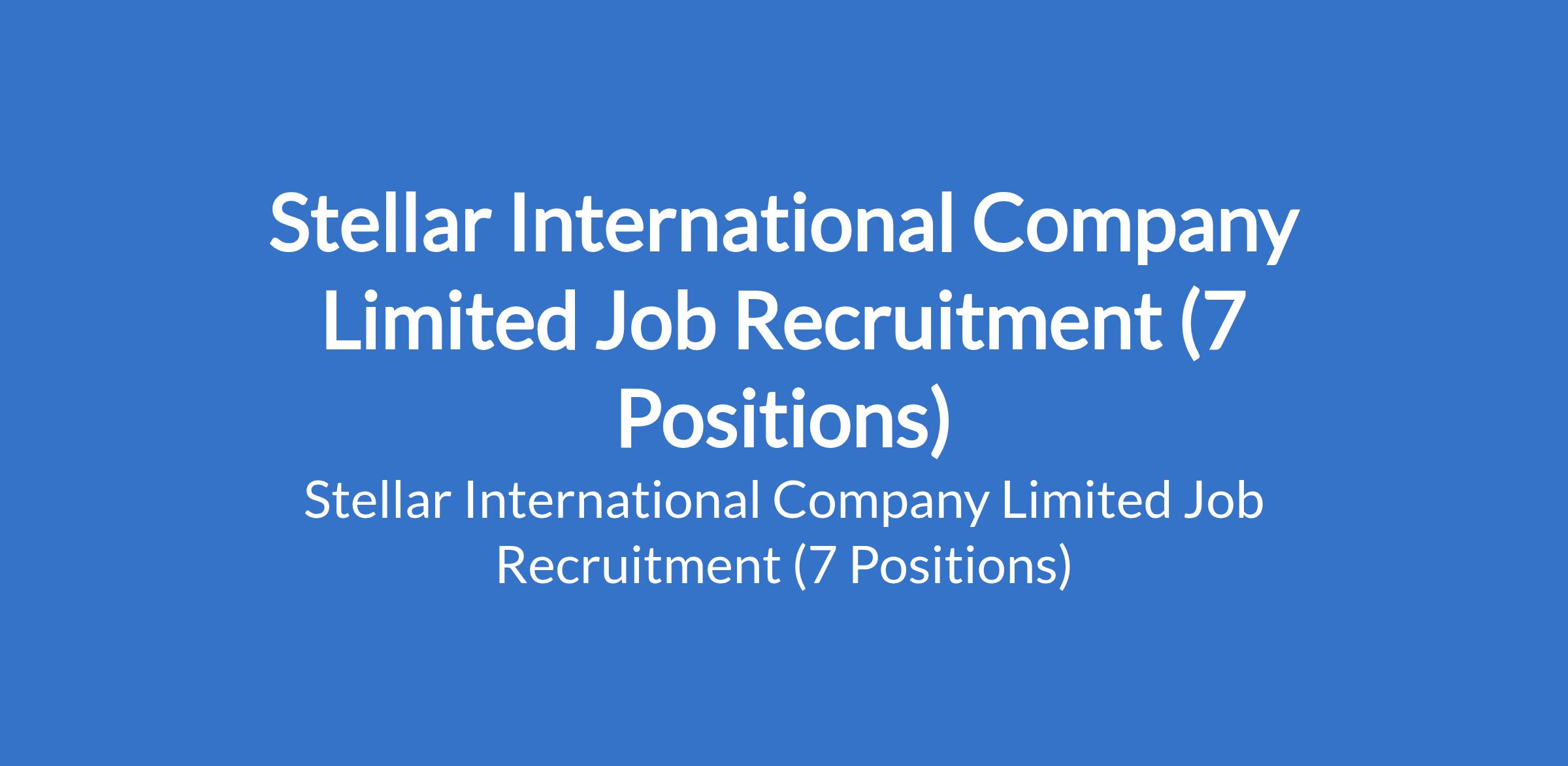 Stellar International Company Limited is recruiting suitably qualified candidates to fill the following positions in Kano, Adamawa, Gombe, Plateau and Rivers States: Sales Representative, Marketer, Marketing Officer, Warehouse Supervisor, and Sales Manager.