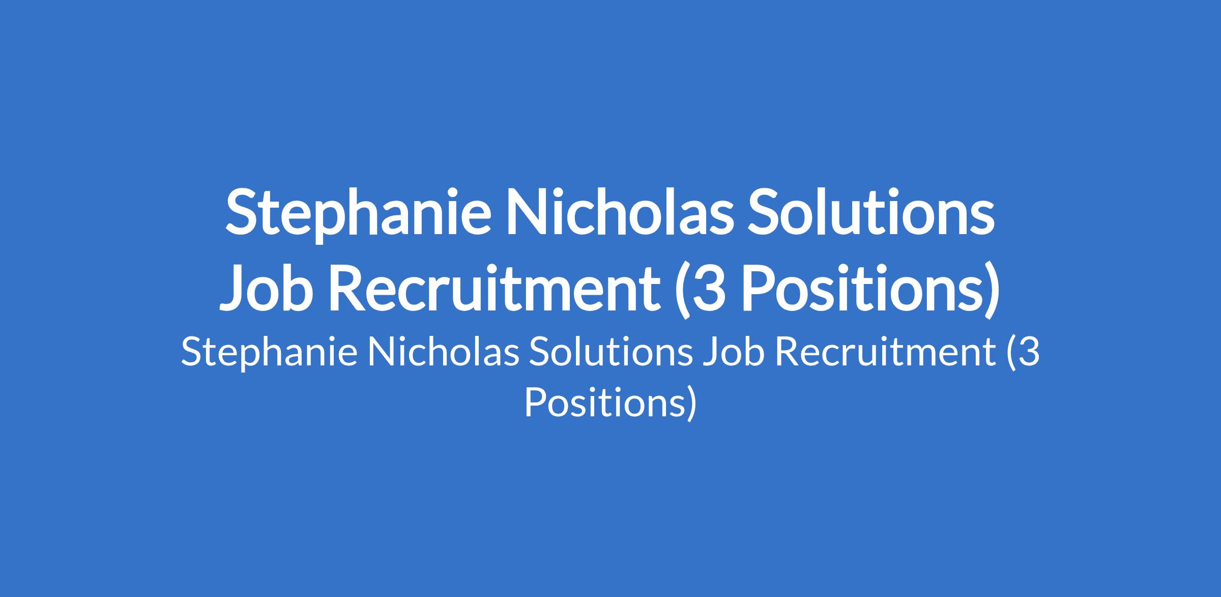 Stephanie Nicholas Solutions Job Recruitment (3 Positions)