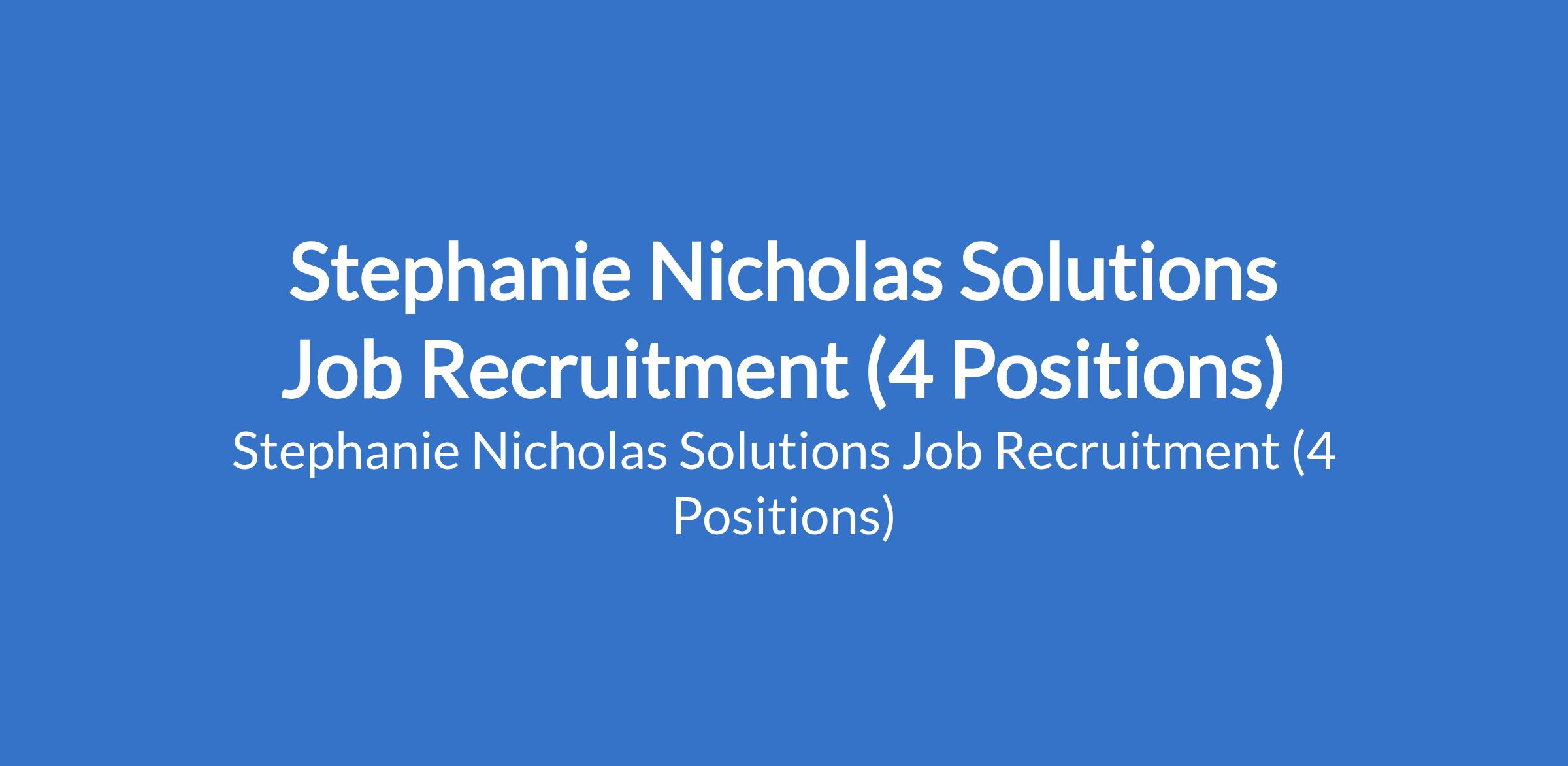 Stephanie Nicholas Solutions Job Recruitment (4 Positions)
