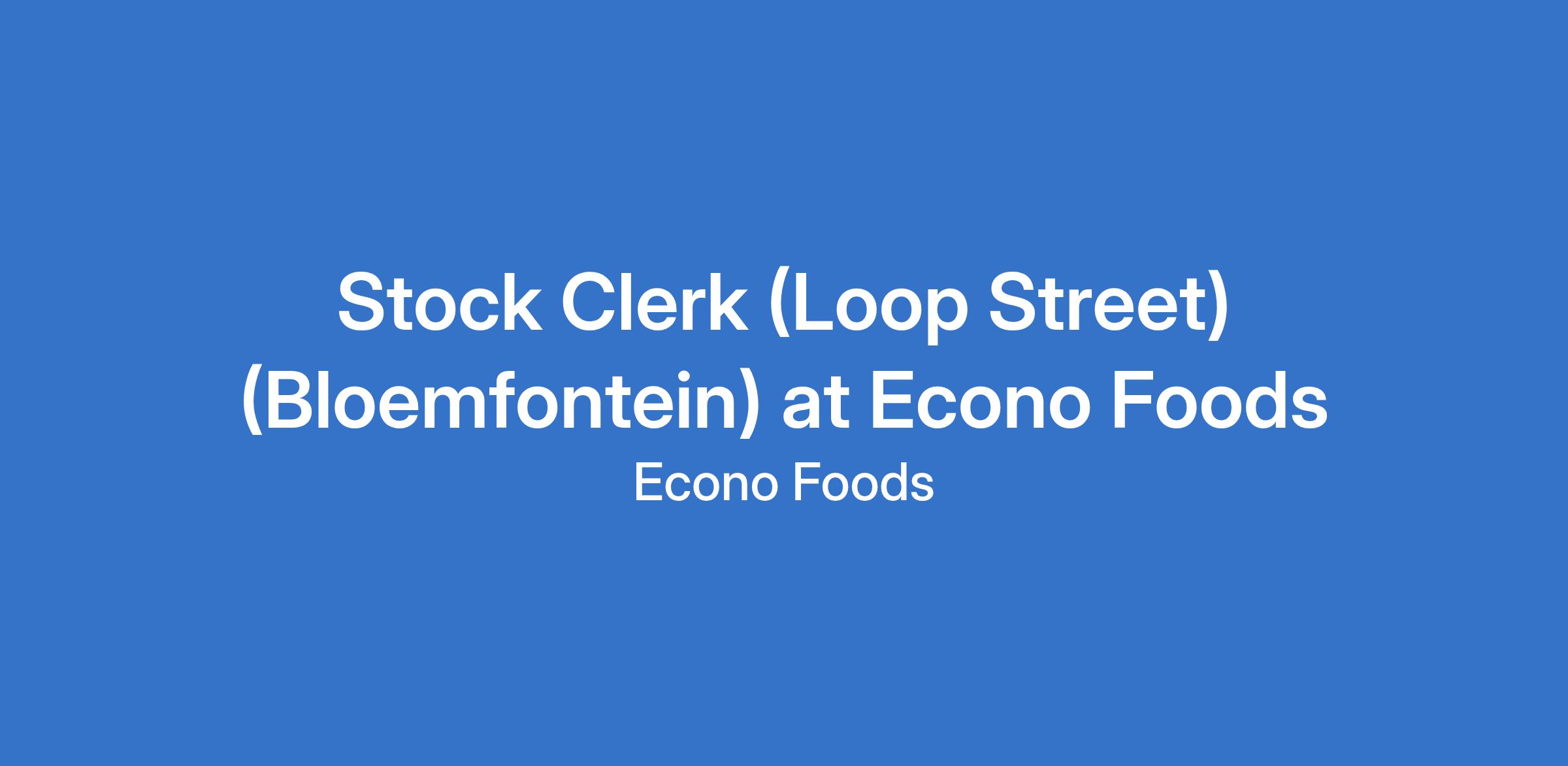 Stock Clerk (Loop Street) (Bloemfontein) at Econo Foods