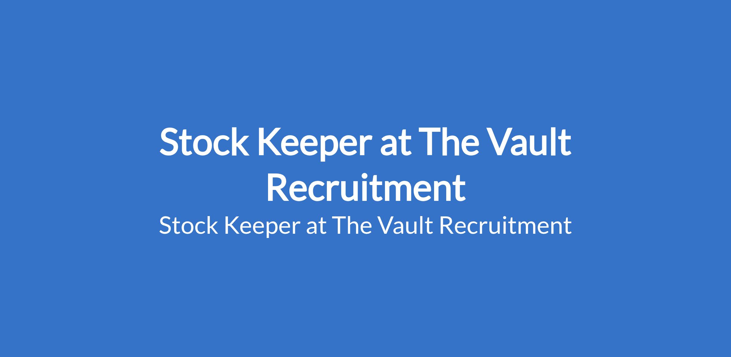 The Vault Recruitment - Our client is recruiting to fill the position of: Stock Keeper. The position is located in Lagos State. Salary: N80,000 monthly. Interested candidates should possess an OND, HND, or B.Sc Degree in any relevant field with proven experience as a stock keeper, storekeeper, or similar role is an added advantage.