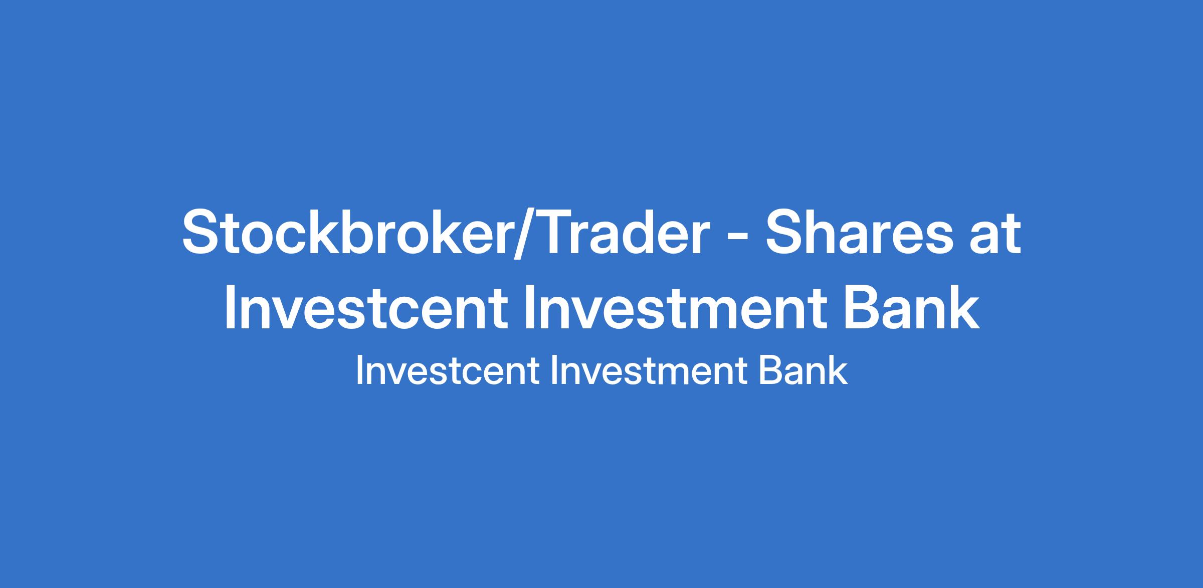 Stockbroker/Trader - Shares at Investcent Investment Bank