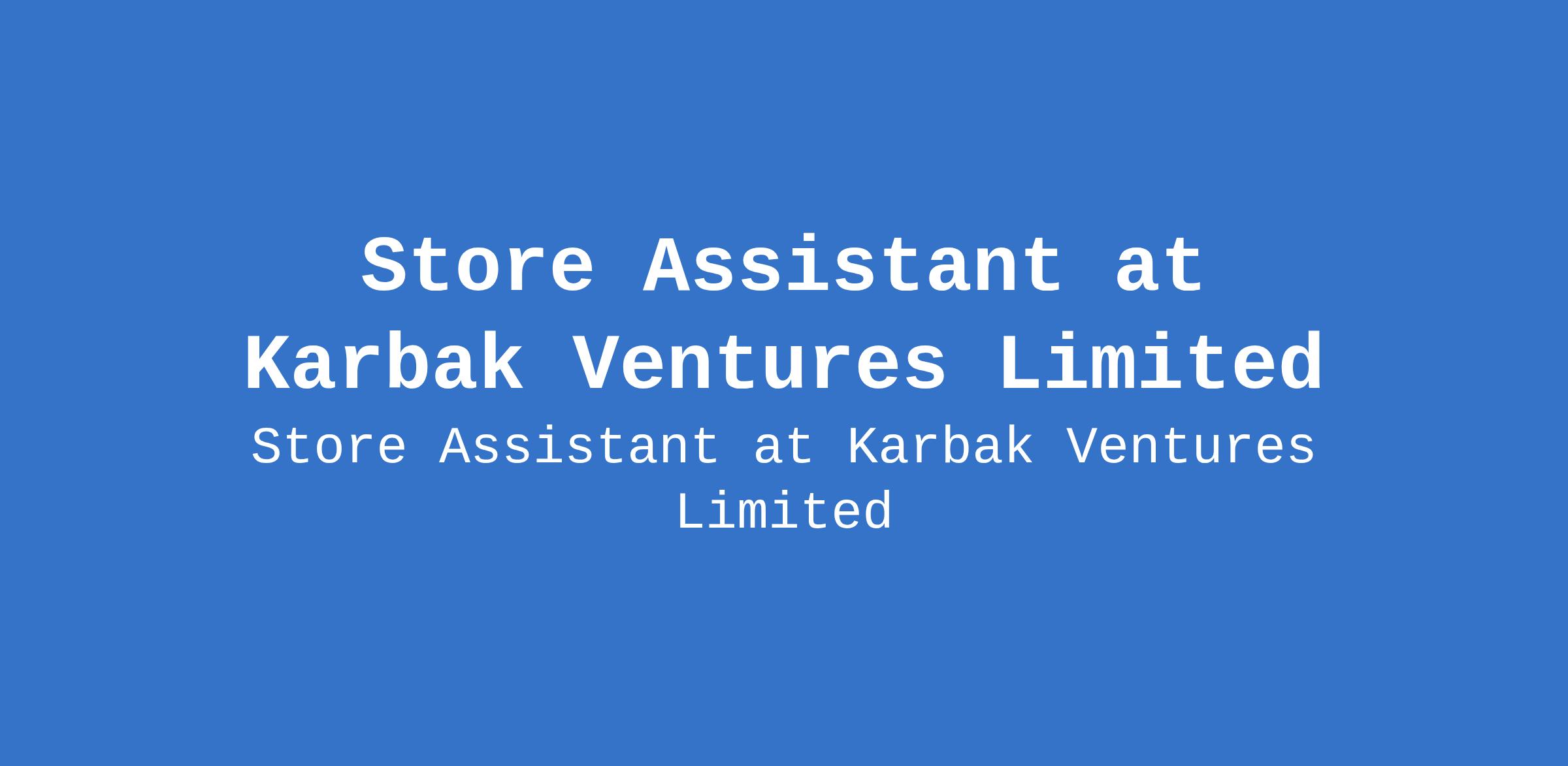 Karbak Ventures Limited is recruiting to fill the position of: Store Assistant. The position is located in Lagos State. Interested candidates should possess a minimum of an SSCE or OND / NCE in a relevant field and at least 1 year of storekeeping or similar experience.
