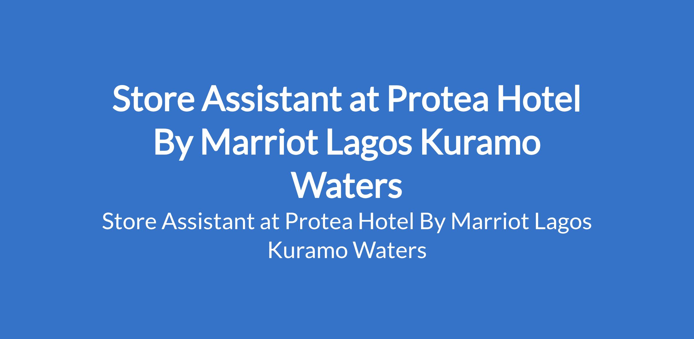 Protea Hotel By Marriot Lagos Kuramo Waters is recruiting to fill the position of: Store Assistant. The position is located in Victoria Island, Lagos State. Interested candidates should possess relevant qualifications.
