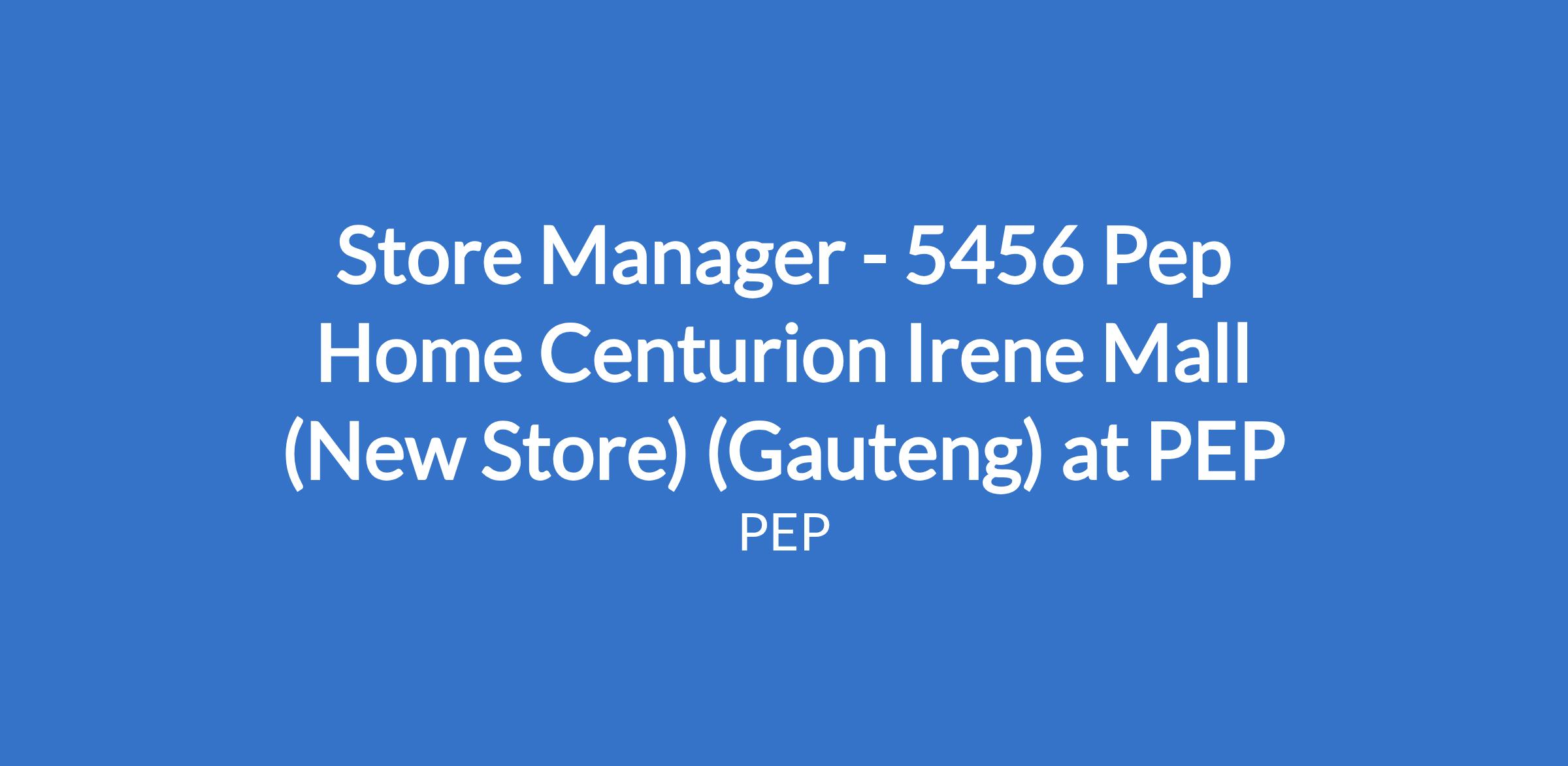 Store Manager - 5456 Pep Home Centurion Irene Mall (New Store) (Gauteng) at PEP
