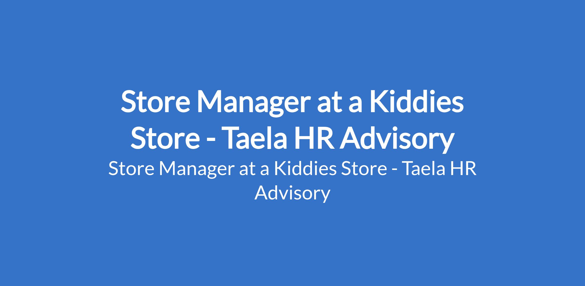 Taela HR Advisory - Our client, a kiddies Store is recruiting to fill the position of: Store Manager. The position is located in Ilupeju, Lagos State. Interested candidates should possess a minimum of OND / HND / BSc in Business Administration or related field with 2 4 years experience in retail or store operations (supervisory role preferred) and Ilupeju (proximity is an advantage).