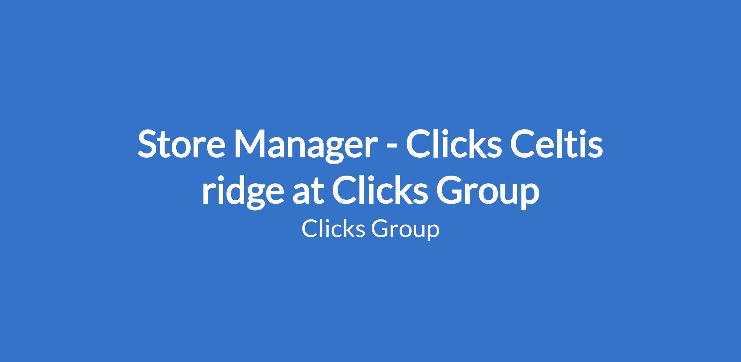 Store Manager - Clicks Celtis ridge at Clicks Group