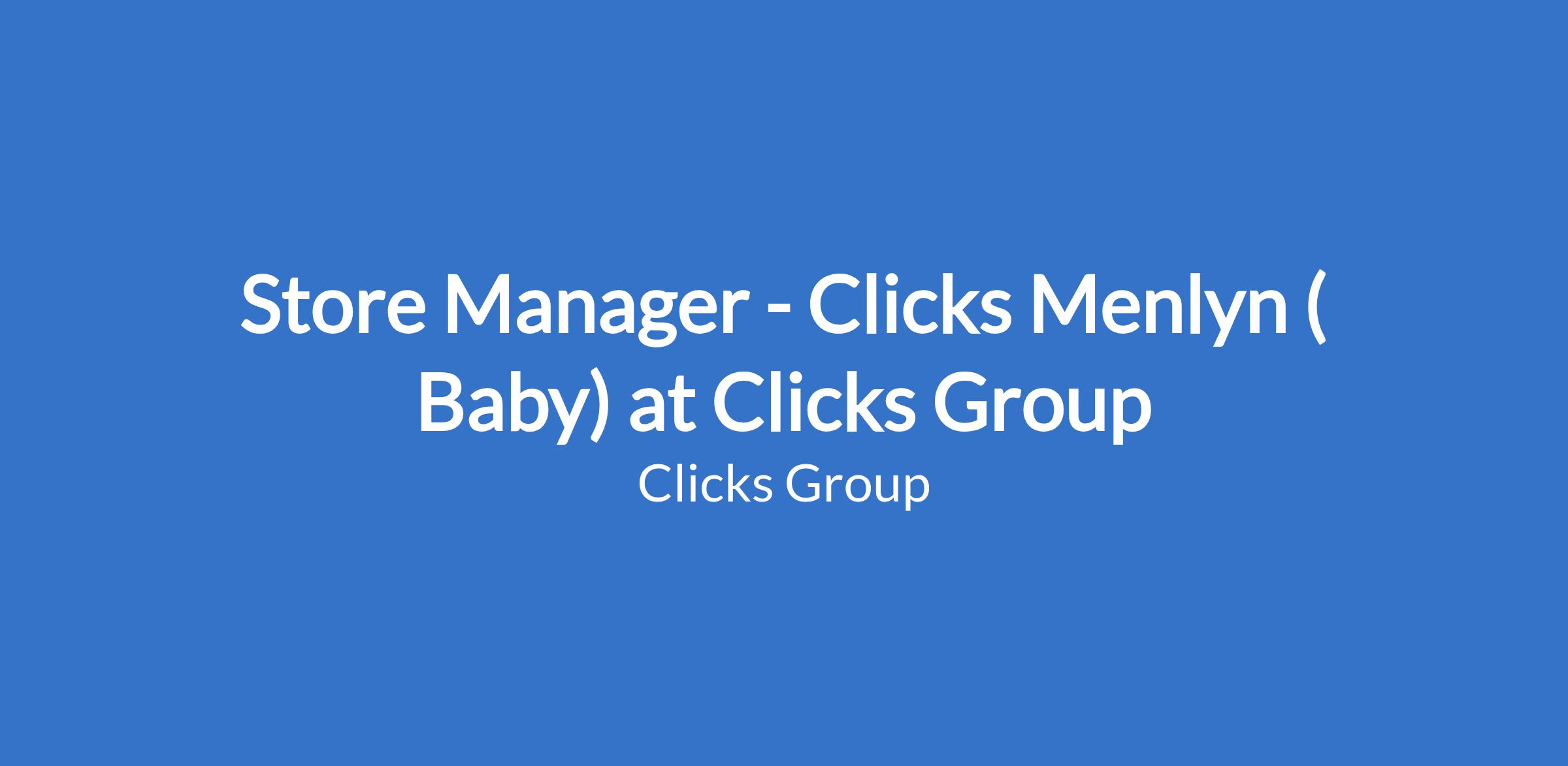 Store Manager - Clicks Menlyn ( Baby) at Clicks Group
