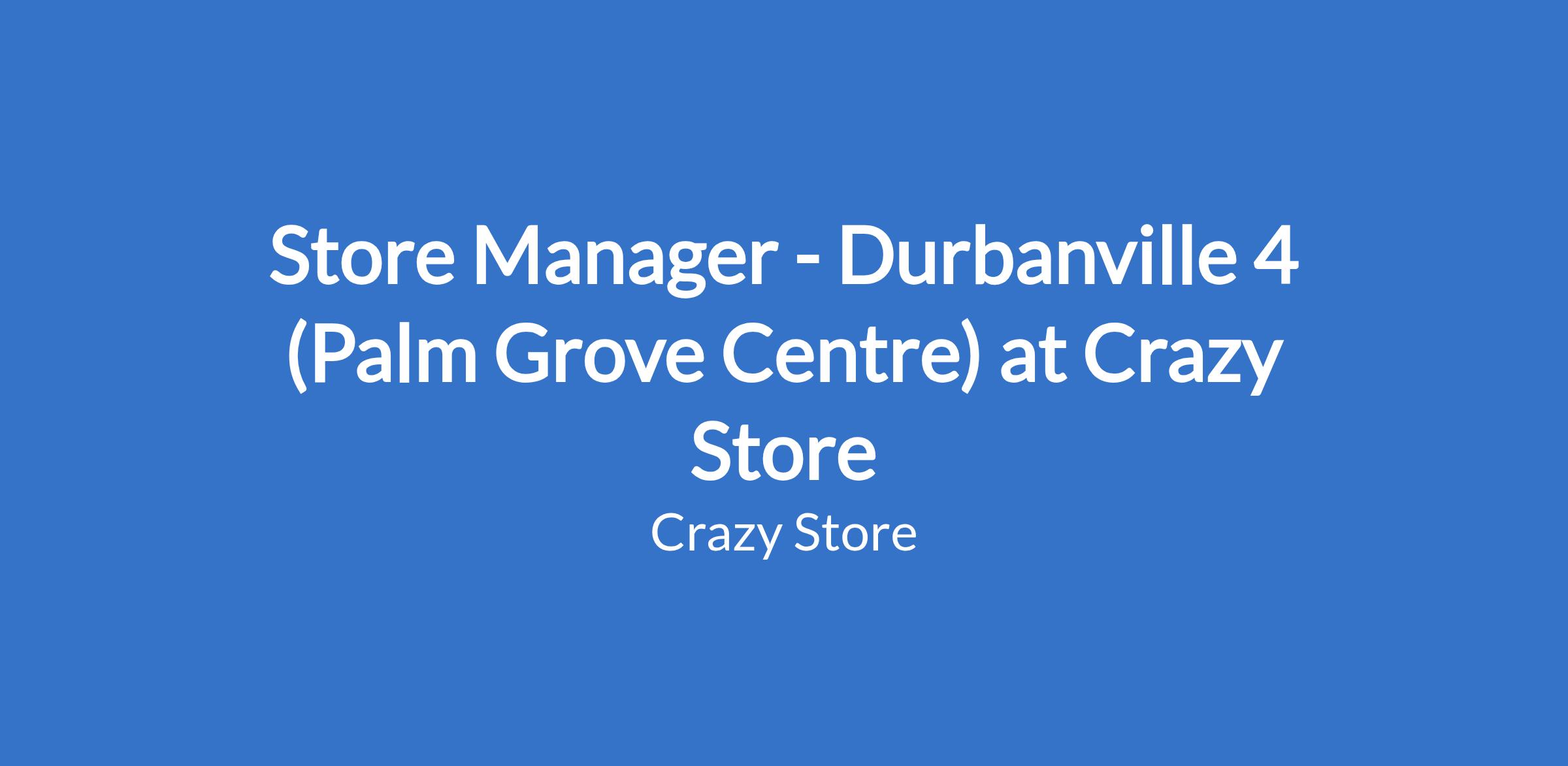 Store Manager - Durbanville 4 (Palm Grove Centre) at Crazy Store