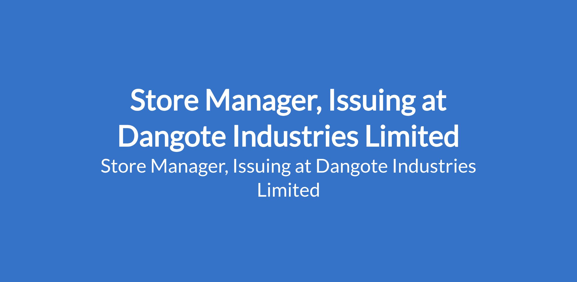 Dangote Industries Limited is recruiting to fill the position of: Store Manager, Issuing. The position is located in Gboko Plant, Benue State. Interested candidates should possess a Bachelors Degree or HND in Logistics, Supply Chain, Mechanical/Electrical Engineering or related discipline with 10+ years stores/issuing experience in heavy industry; experience in cement or large manufacturing preferred.