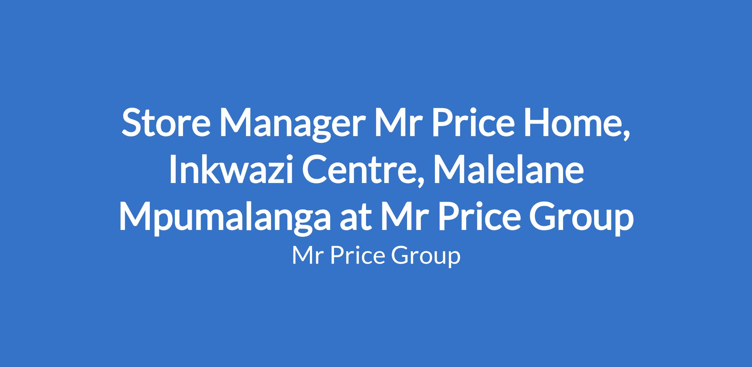Store Manager Mr Price Home, Inkwazi Centre, Malelane Mpumalanga at Mr Price Group