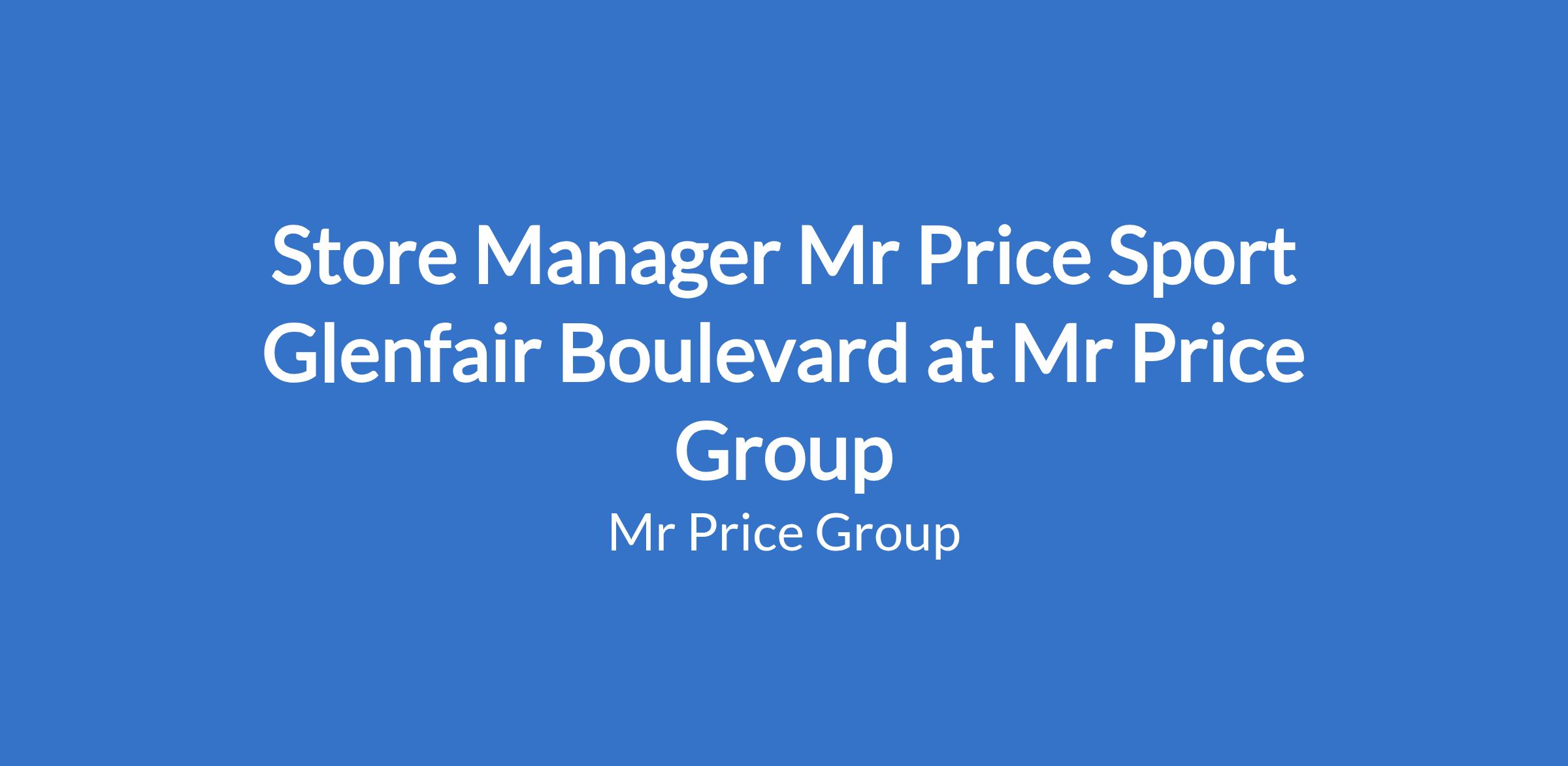Store Manager Mr Price Sport Glenfair Boulevard at Mr Price Group