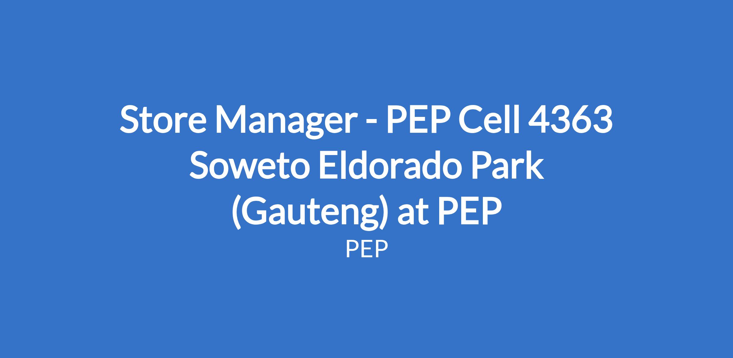 Store Manager - PEP Cell 4363 Soweto Eldorado Park (Gauteng) at PEP