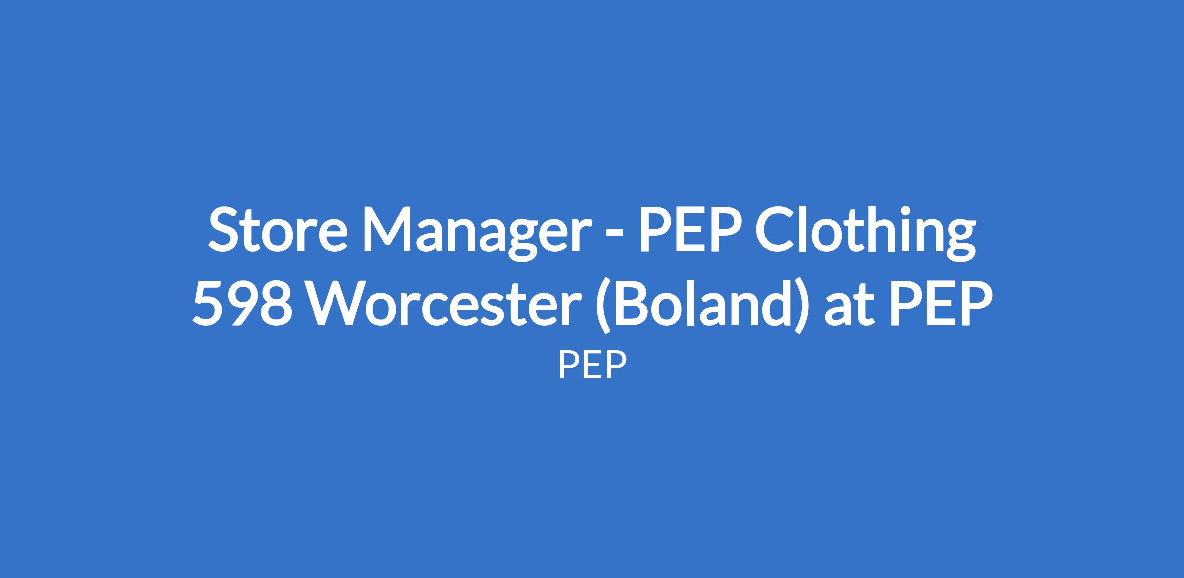Store Manager - PEP Clothing 598 Worcester (Boland) at PEP