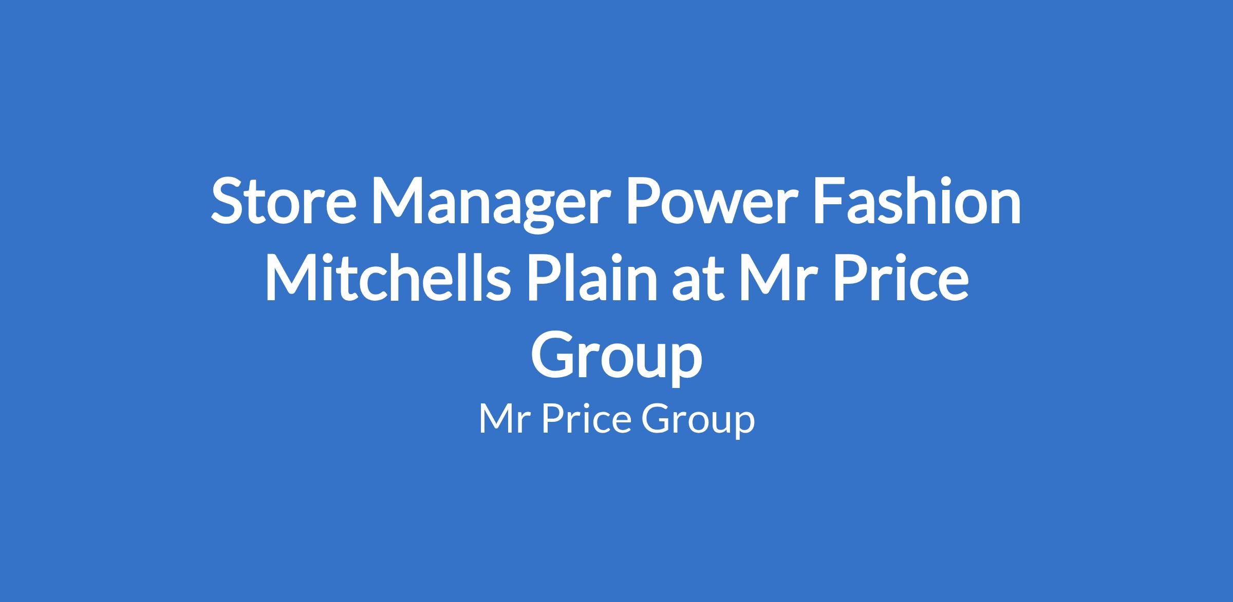 Store Manager Power Fashion Mitchells Plain at Mr Price Group