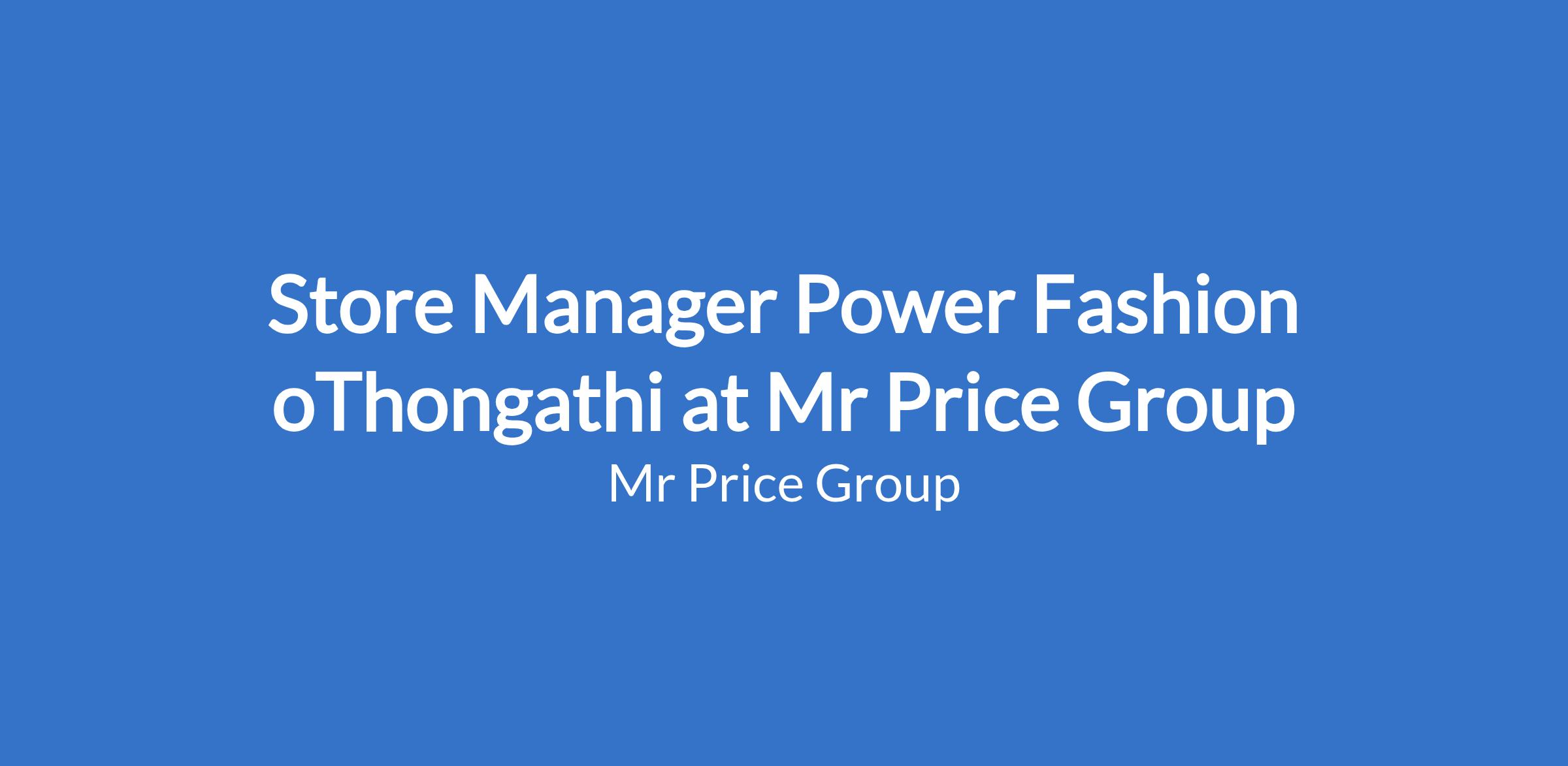 Store Manager Power Fashion oThongathi at Mr Price Group