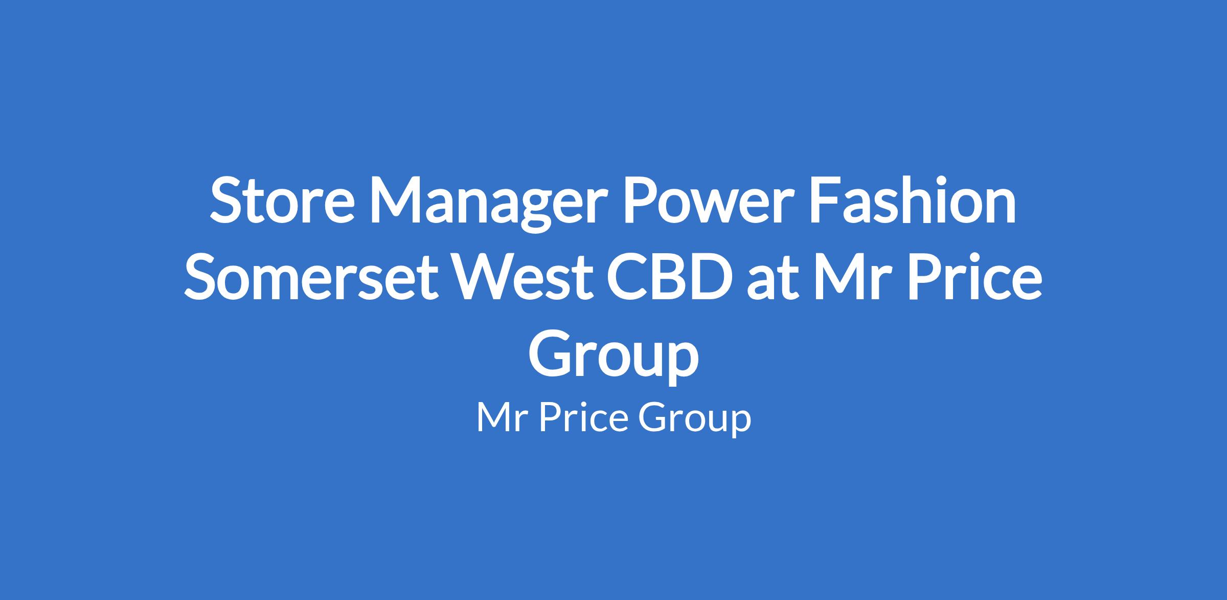 Store Manager Power Fashion Somerset West CBD at Mr Price Group