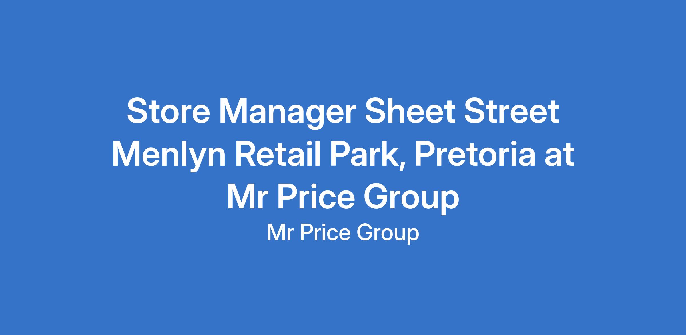 Store Manager Sheet Street Menlyn Retail Park, Pretoria at Mr Price Group