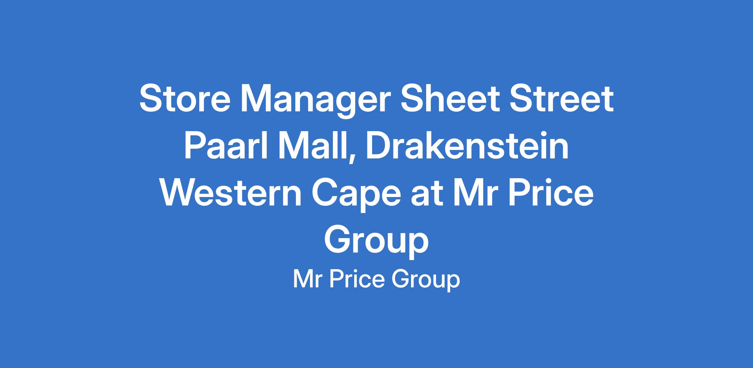 Store Manager Sheet Street Paarl Mall, Drakenstein Western Cape at Mr Price Group