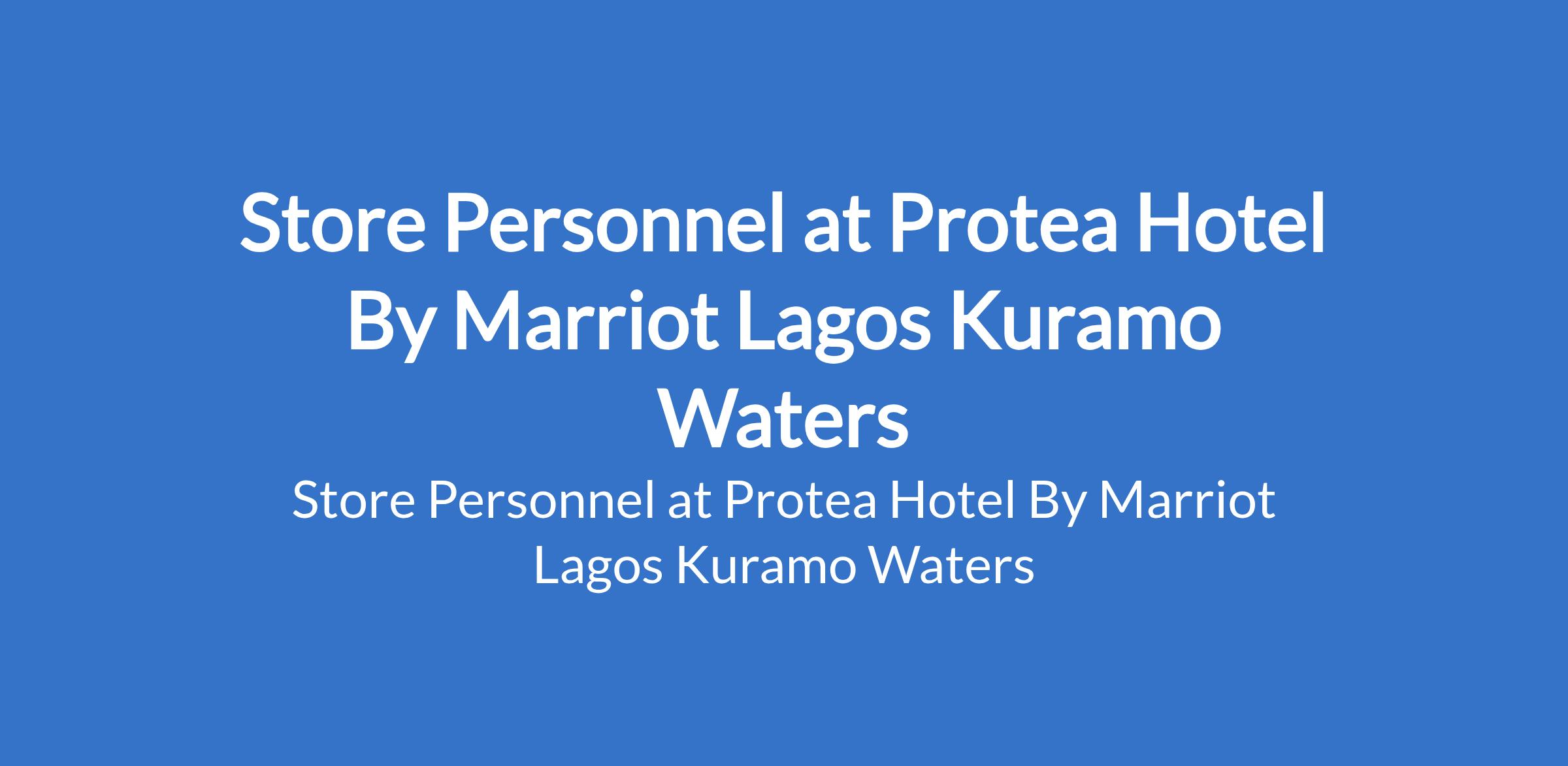 Protea Hotel By Marriot Lagos Kuramo Waters is recruiting to fill the position of: Store Personnel. The position is located in Lagos State. Salary: N120,000 - N130,000 monthly. Interested candidates should possess a Degree in Accounting, Finance or a related field (highly preferable) with 2-4 years experience in Store keeping from the hospitality sector.