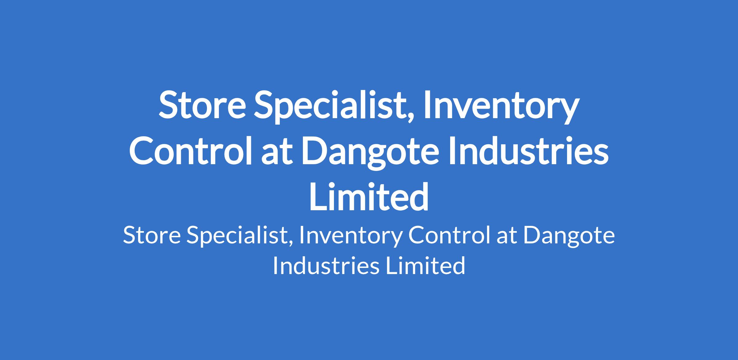 Dangote Industries Limited is recruiting to fill the position of: Store Specialist, Inventory Control. The position is located in Obajana Plant, Kogi State. Interested candidates should possess a Bachelor's Degree in Accounting, Supply Chain Management, Logistics, Business Administration, or a related field with a minimum of 10 years experience in store operations.