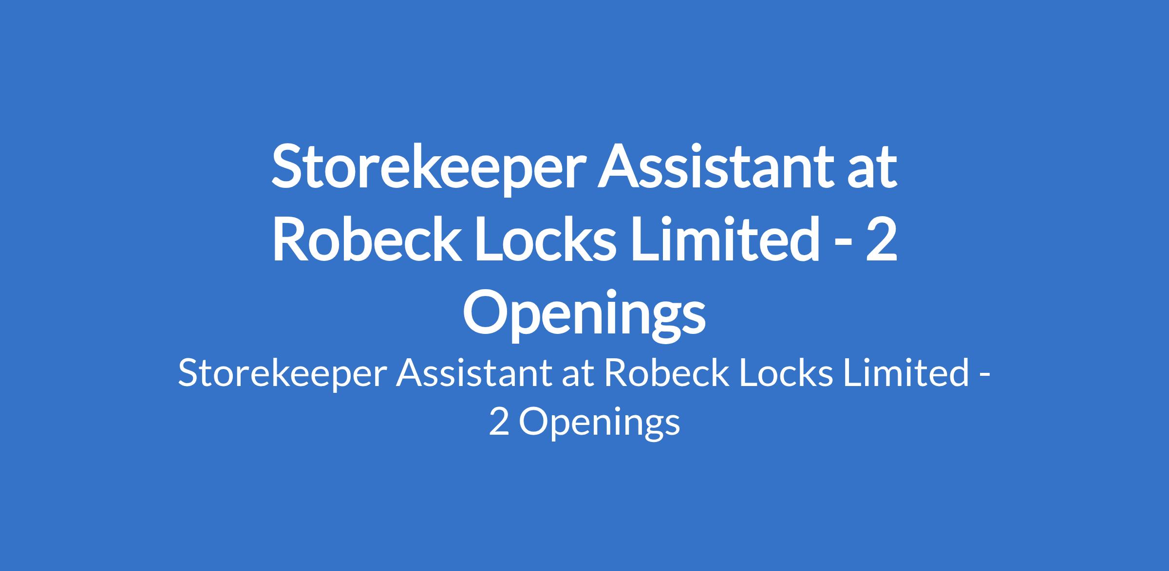 Robeck Locks Limited is recruiting to fill the position of: Storekeeper Assistant. The position is located in Mushin and Amuwo Odofin, Lagos State. Salary: N70,000 - N90,000 monthly. Interested candidates should possess a minimum of SSCE / OND (ND) in any related field with 01 year of experience in a store, warehouse, or inventory role.