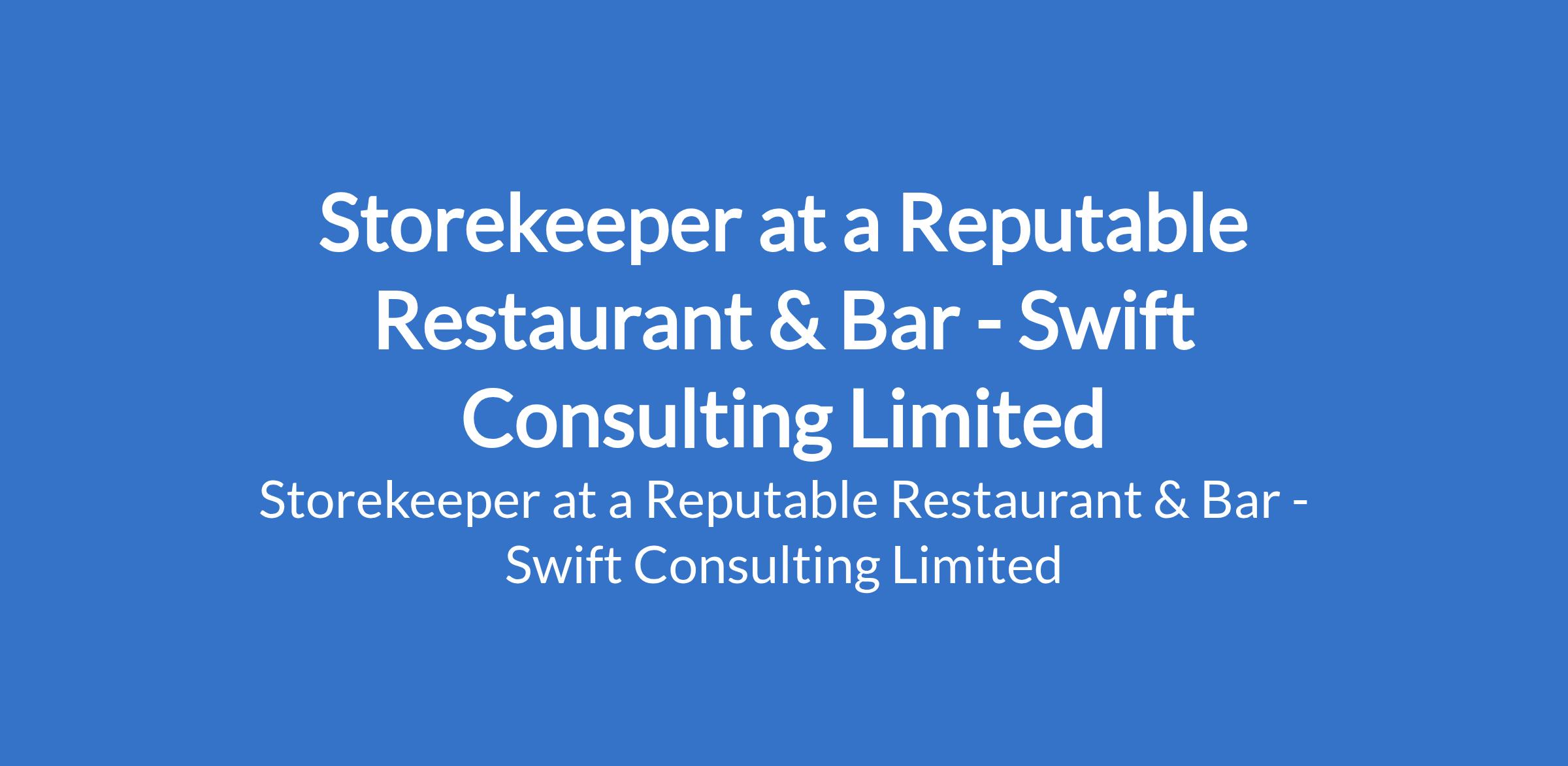 Swift Consulting Limited - Our client, a reputable Restaurant & Bar is recruiting to fill the position of: Storekeeper. The position is located in Apapa, Lagos State. Interested candidates should be an ND or Senior Secondary School Certificate (SSCE) holders only.