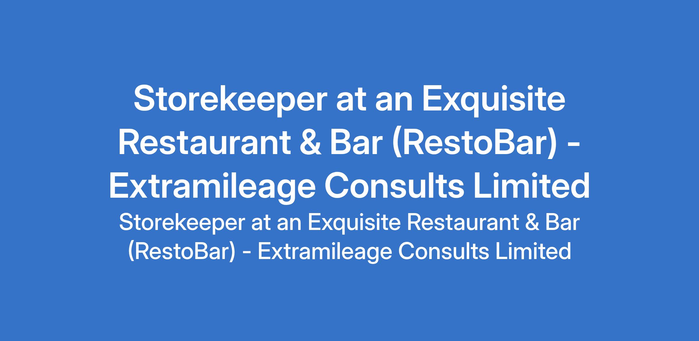 Extramileage Consults Limited - Our client an exquisite Restaurant & Bar (RestoBar) is recruiting to fill the position of: Storekeeper. The position is located in Maitama, Abuja (FCT). Interested candidates should possess relevant qualifications with a minimum of 1 relevant experience