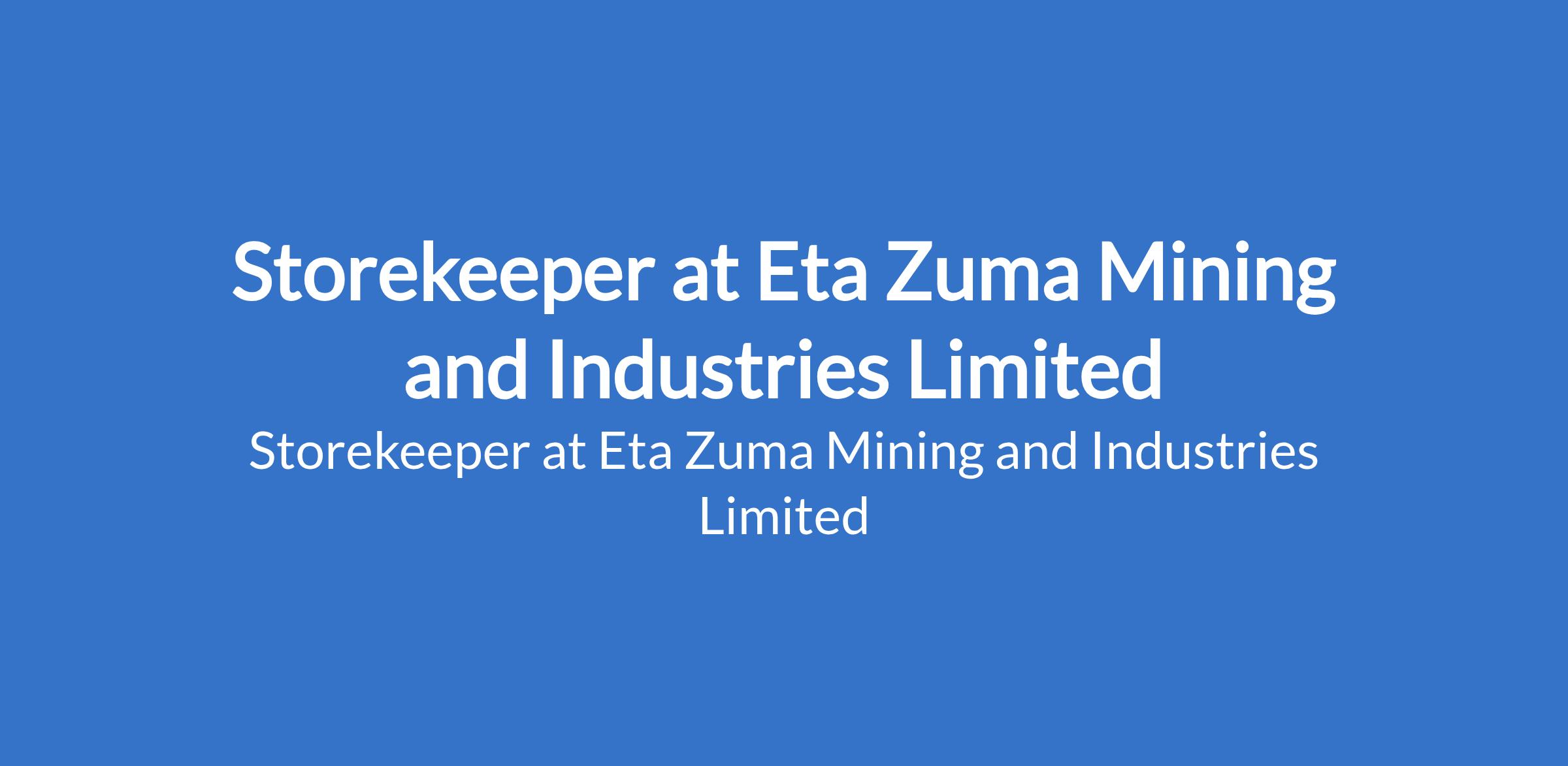 Eta Zuma Mining and Industries Limited is recruiting to fill the position of: Storekeeper. The position is located in Kogi State. Interested candidates should possess an SSCE / OND / HND in Business Administration, Supply Chain Management, Inventory / Store Management, Accounting, or any related field with a minimum of 3 years of experience in storekeeping, warehousing, or inventory control; Experience with stock management systems is an added advantage.