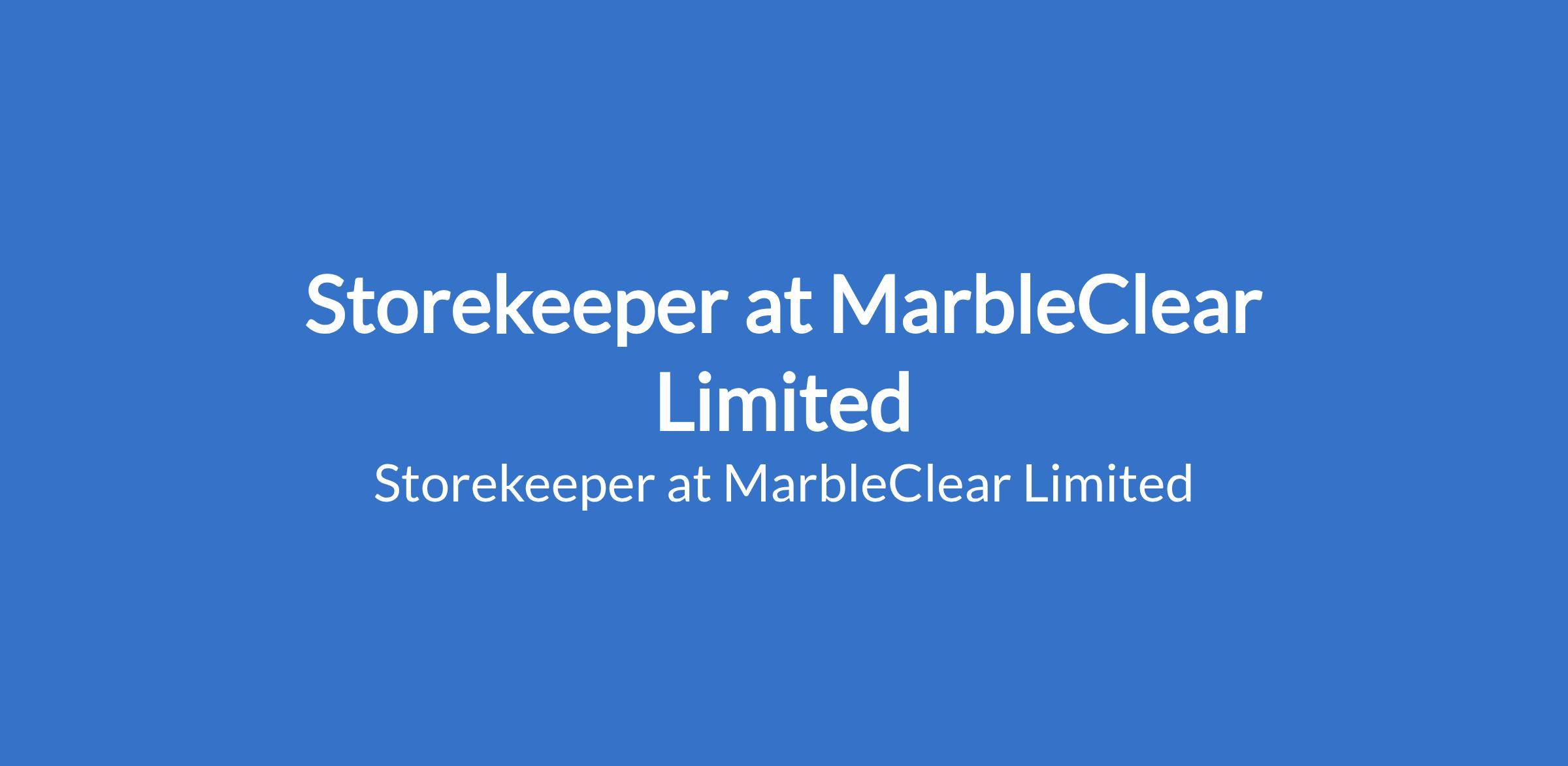MarbleClear Limited is recruiting to fill the position of: Storekeeper. The position is located in Sokoto State. Salary: N120,000 / month. Interested candidates should possess relevant qualifications with the ability to manage, organize and must be detailed-oriented and proven work experience.