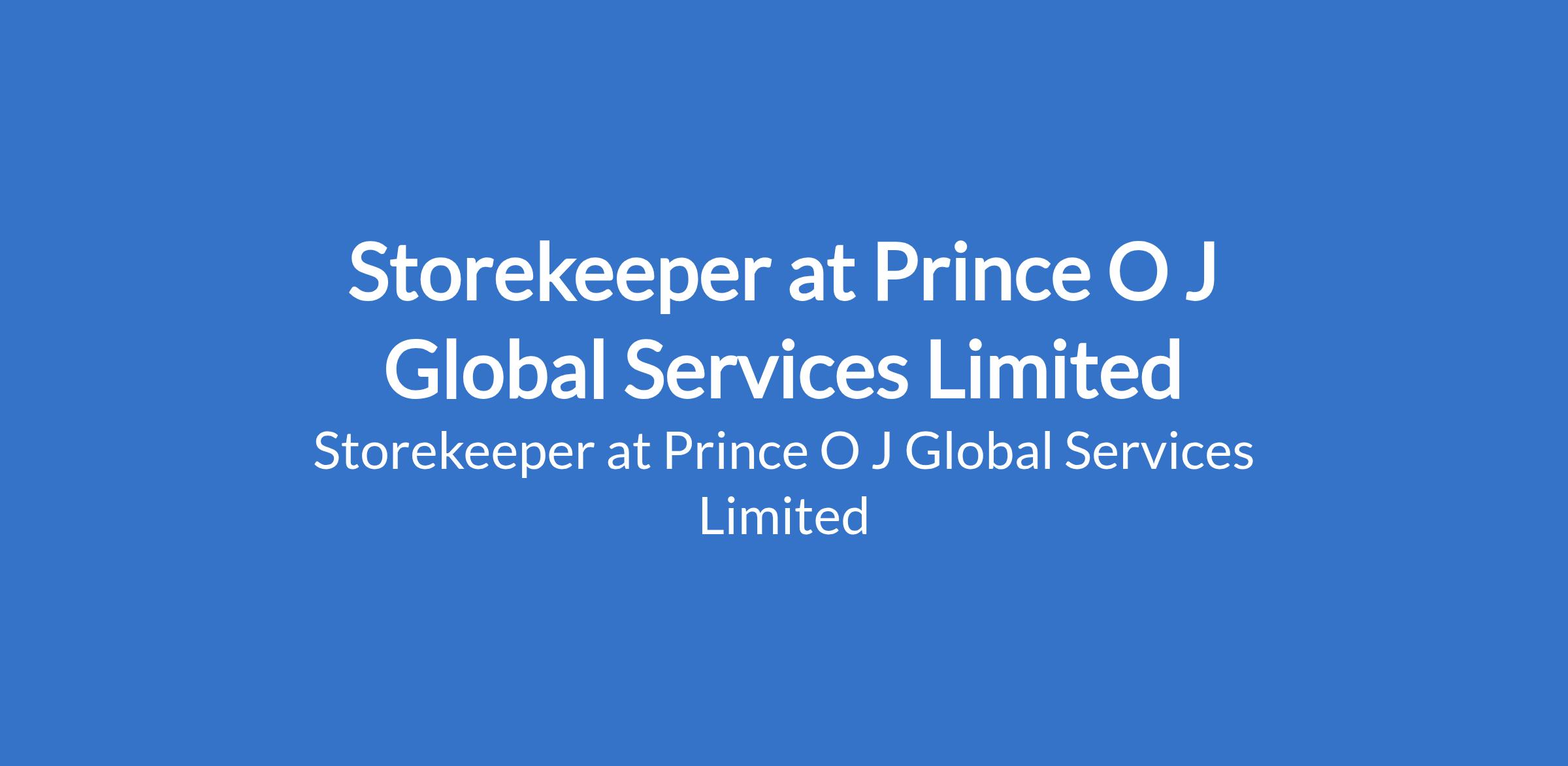 Prince O J Global Services Limited is recruiting to fill the position of: Storekeeper. The position is located in Onitsha, Anambra State. Salary: N70,000 - N80,000 per month. Interested candidates should possess a B.SC or HND Degree in related field with at least 1 yr experience.
