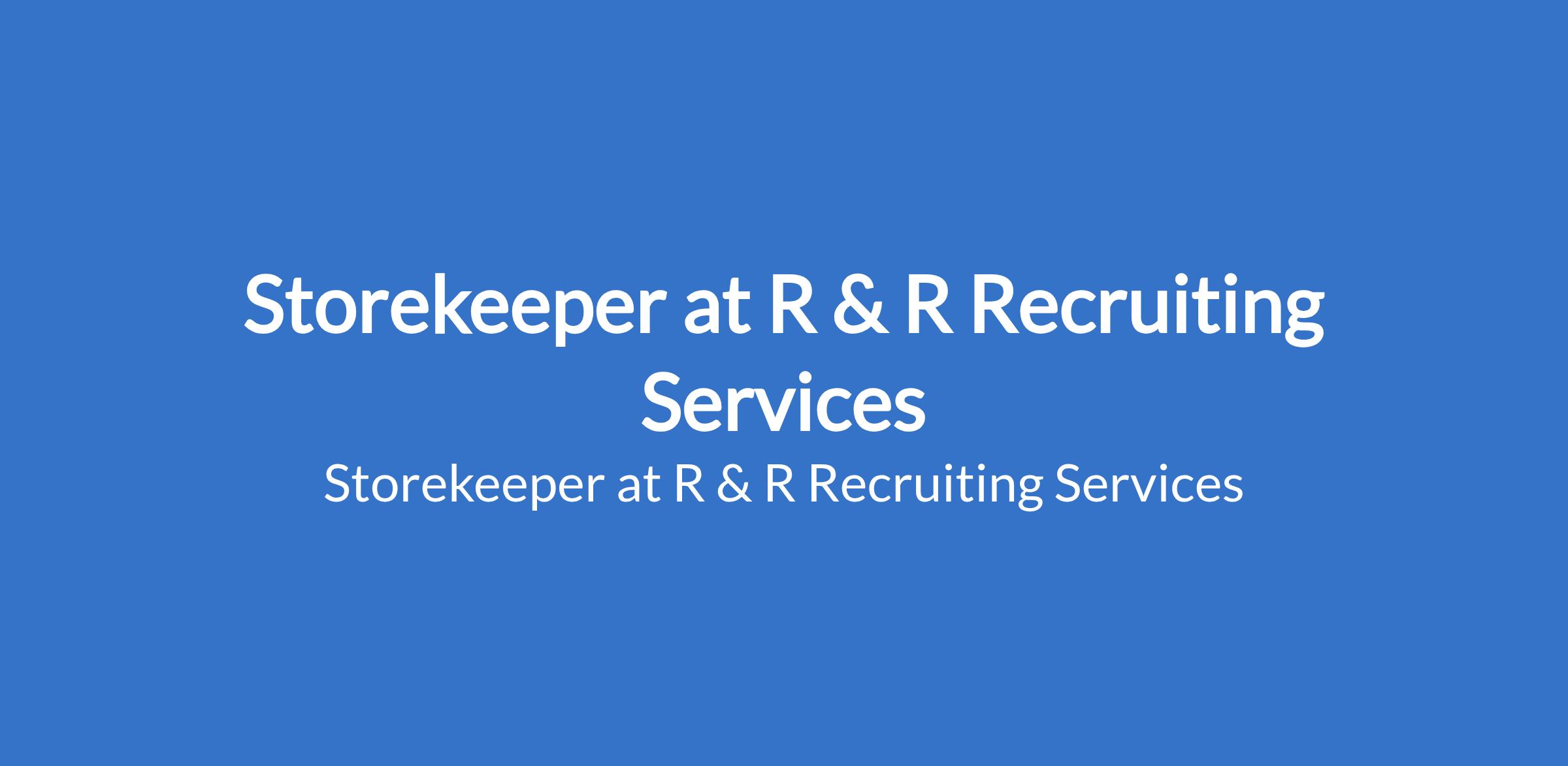 Storekeeper at R & R Recruiting Services