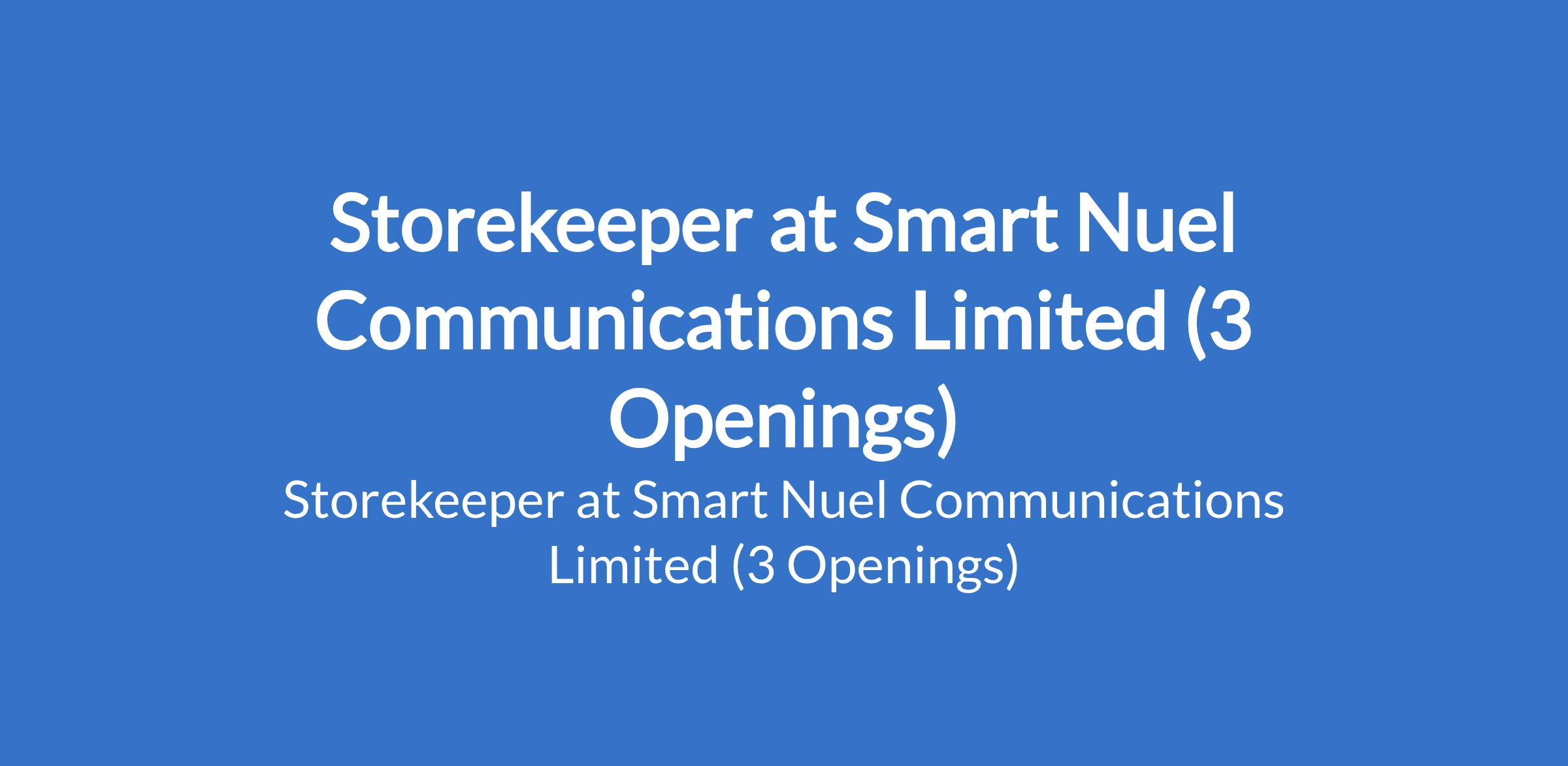 Smart Nuel Communications Limited is recruiting to fill the position of: Storekeeper. The position is located in Alaba & Lekki - Lagos and Port Harcourt, Rivers States. Interested candidates should possess a minimum of an SSCE / OND in Accounting, Business Administration, or a related field.