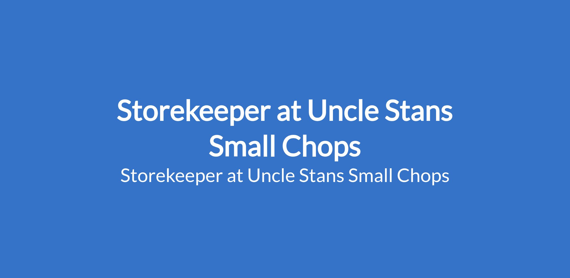 Uncle Stans Small Chops is recruiting to fill the position of: Store Keeper. The position is located in Ikoyi, Osapa / Orchid, or Admiralty Road (Lekki) - Lagos State. Salary: N130,000 monthly. In this role, you will be responsible for managing inventory, tracking stock levels, receiving and issuing goods, and ensuring that all store operations are carried out accurately and efficiently. Interested candidates should possess an OND / HND / B.Sc in any relevant fields with 13 years experience as a Store Keeper or in store / inventory management and must reside within Ikoyi, Osapa/Orchid, or Admiralty Road (Lekki).