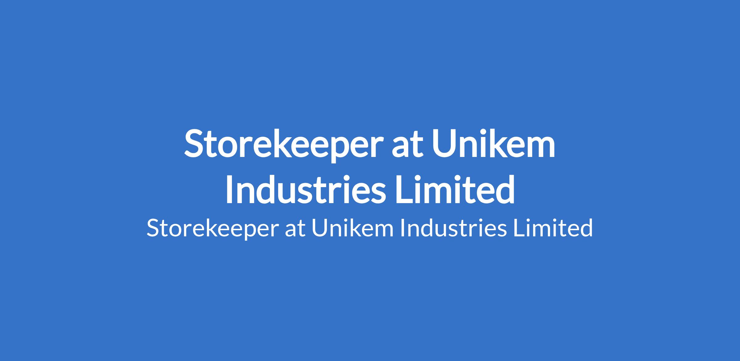 Storekeeper at Unikem Industries Limited