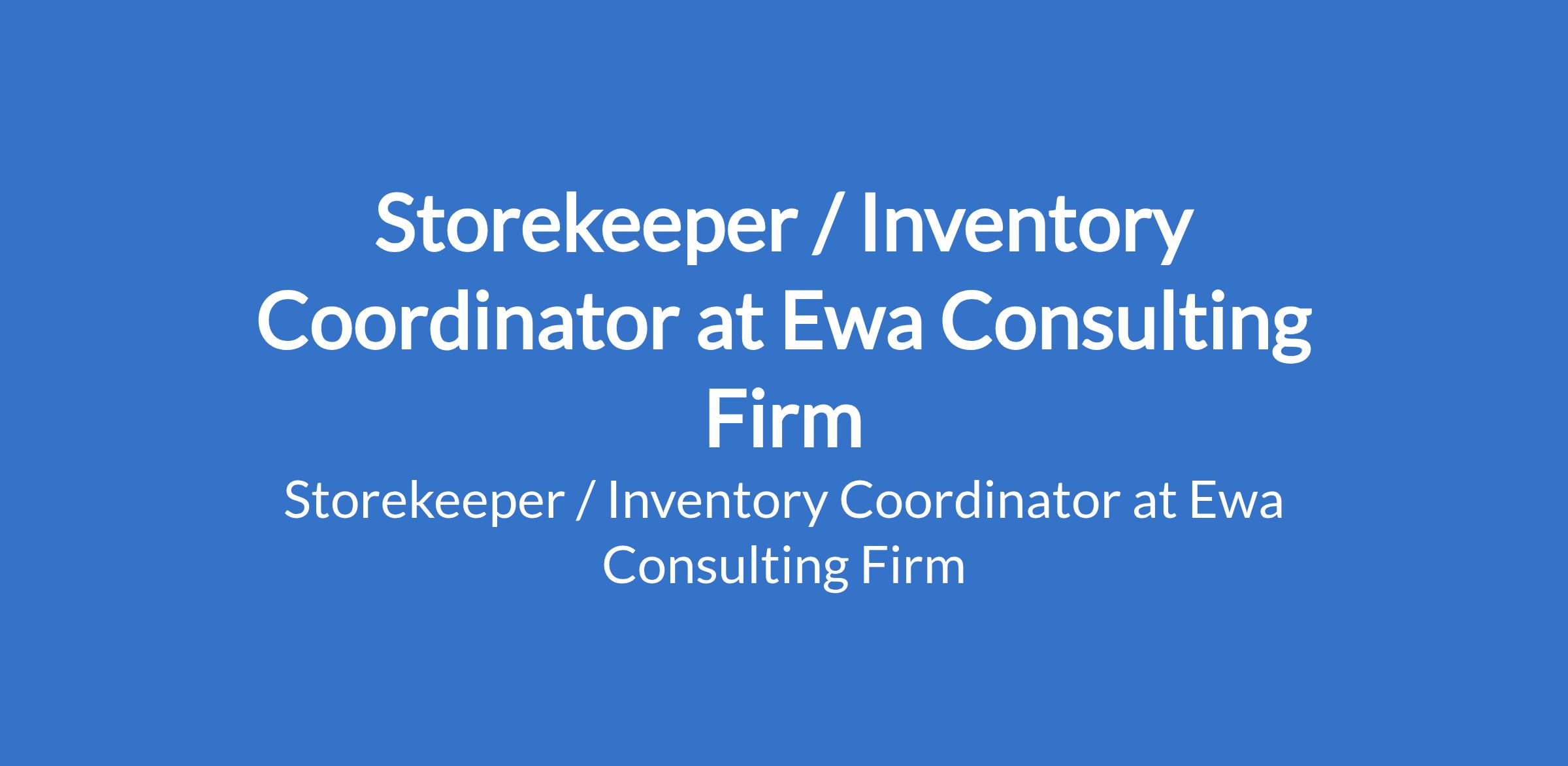 Ewa Consulting Firm is recruiting to fill the position of: Store Keeper / Inventory Coordinator. The position is located in Kubwa, Abuja (FCT). Salaey: N150,000 - N200,000 / month. In this role, you will be responsible for managing and controlling all inventory operations ensuring optimal stock levels, accurate record-keeping and efficient storage of materials and supplies.