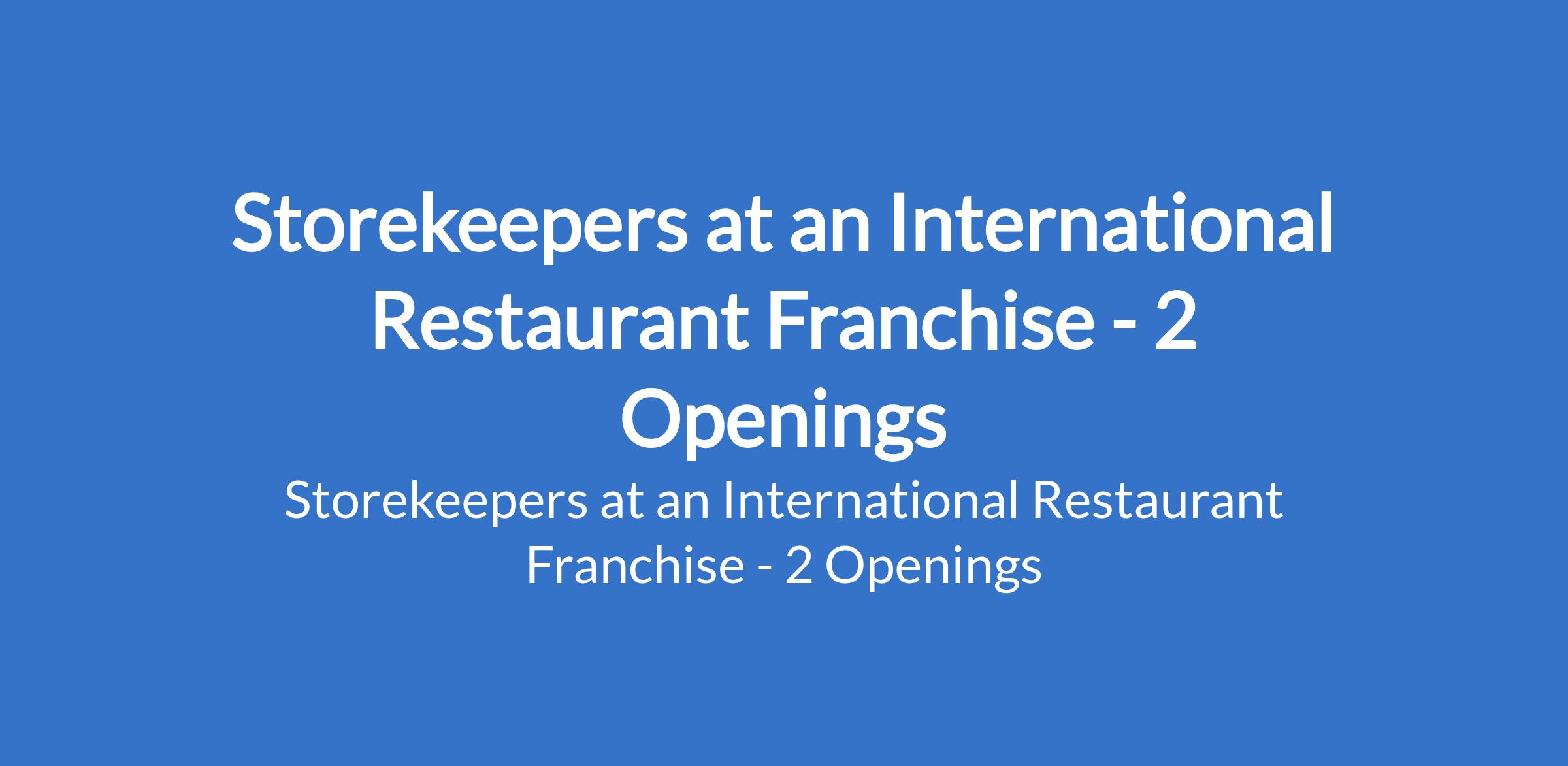 Storekeepers at an International Restaurant Franchise - 2 Openings