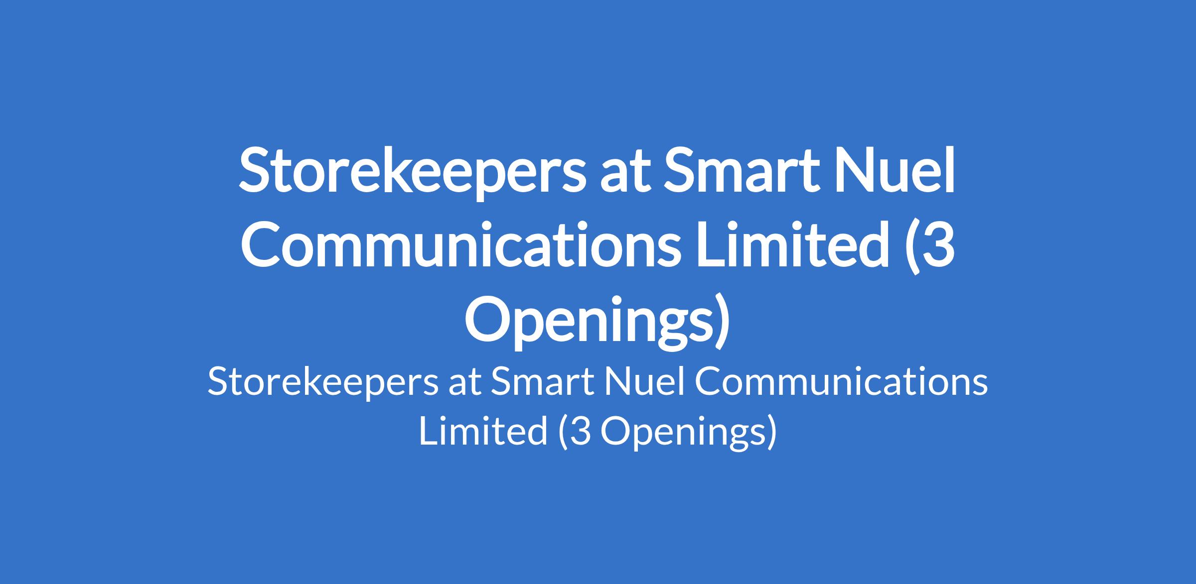 Smart Nuel Communications Limited is recruiting to fill the position of: Storekeeper. The position is located in Sango Ota - Ogun, Ikeja - Lagos; and Port Harcourt - Rivers States. Salary: N100,000 - N120,000 monthly. Interested candidates should possess an SSCE, OND, or HND qualification with 1-2 years experience.